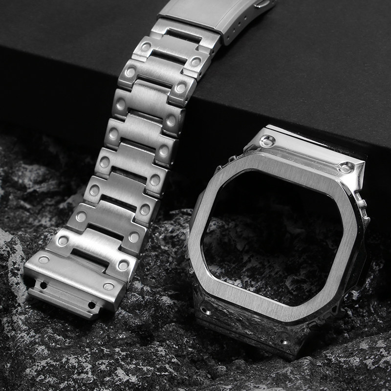 📚 适配卡西欧小方块钢带DW-H5600不锈钢表带改装精钢表壳套装配件男