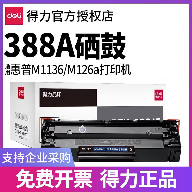 📚 得力388a硒鼓适用惠普hp m1136 m126a m126nw打印机墨盒cc388a p1106 p1108m128粉盒m1213nf 易加粉88a碳粉