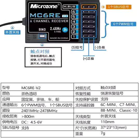 📚 迈克接收机 MC7RB MC6RE V2 E6R-E自稳 MC8RE S-BUS 6C穿越机