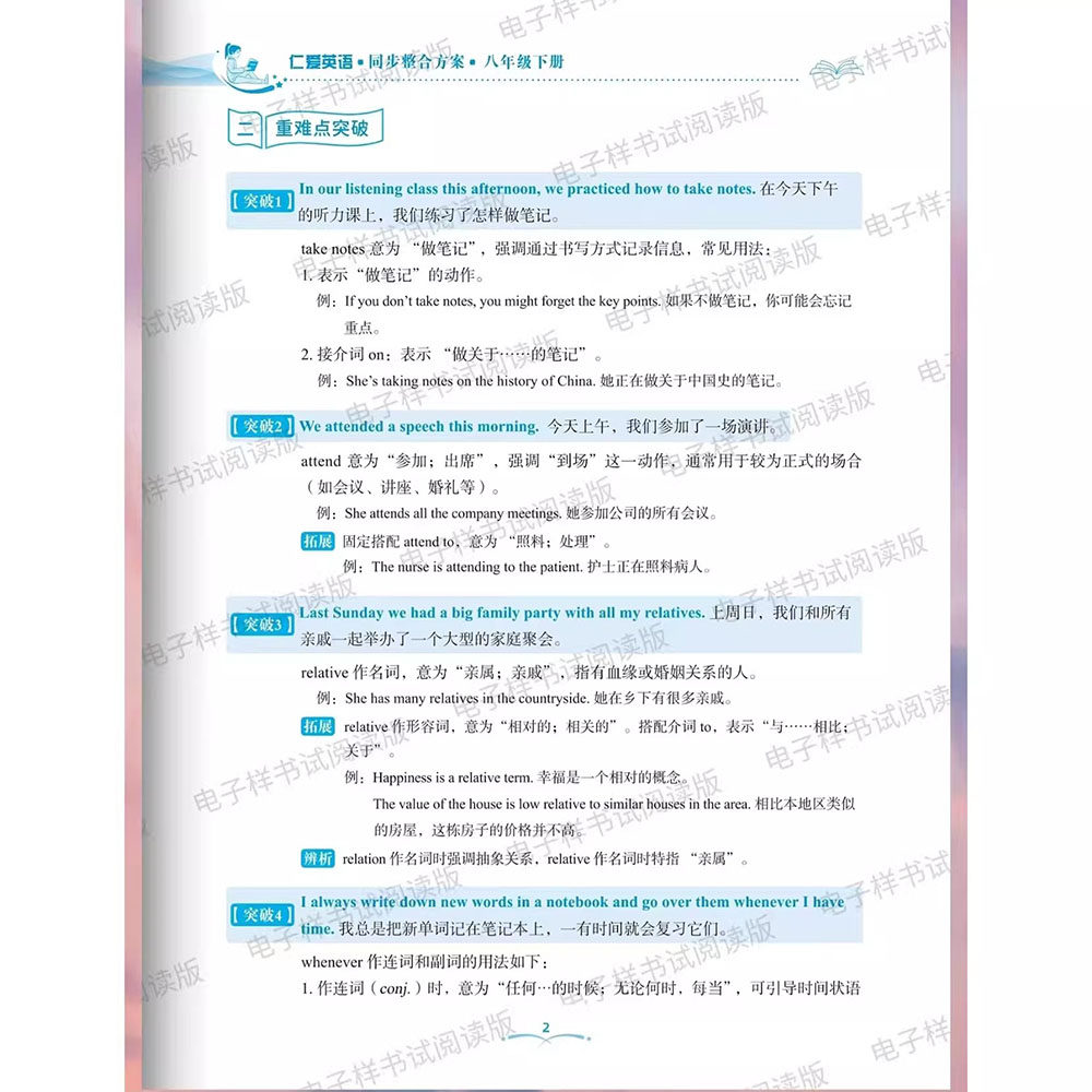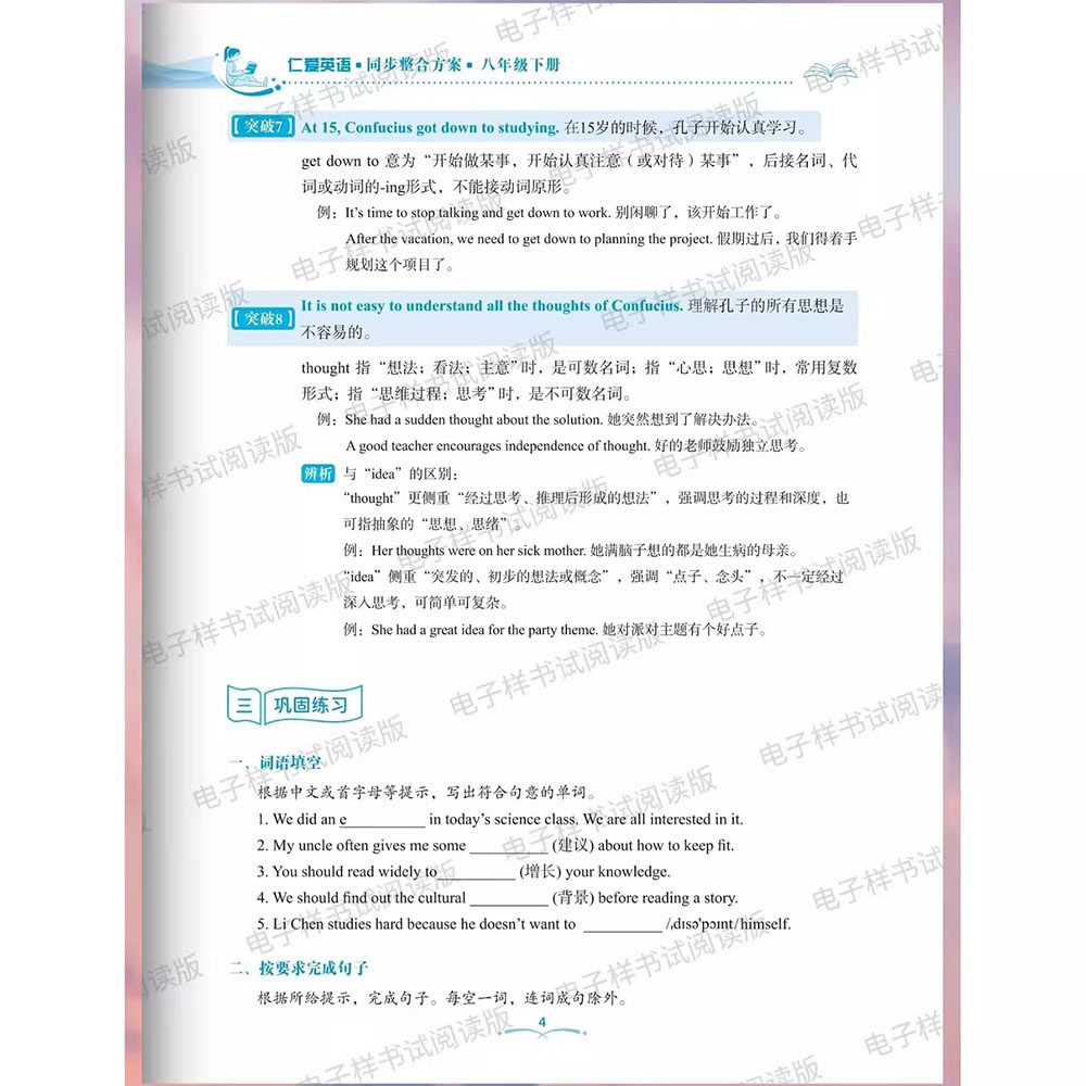 📚 新课改正版图书2026春仁爱英语同步整合方案八年级下册八8下初二2英语听力教材阅读科普版听力讲解预习复习辅导书同步下学期模拟