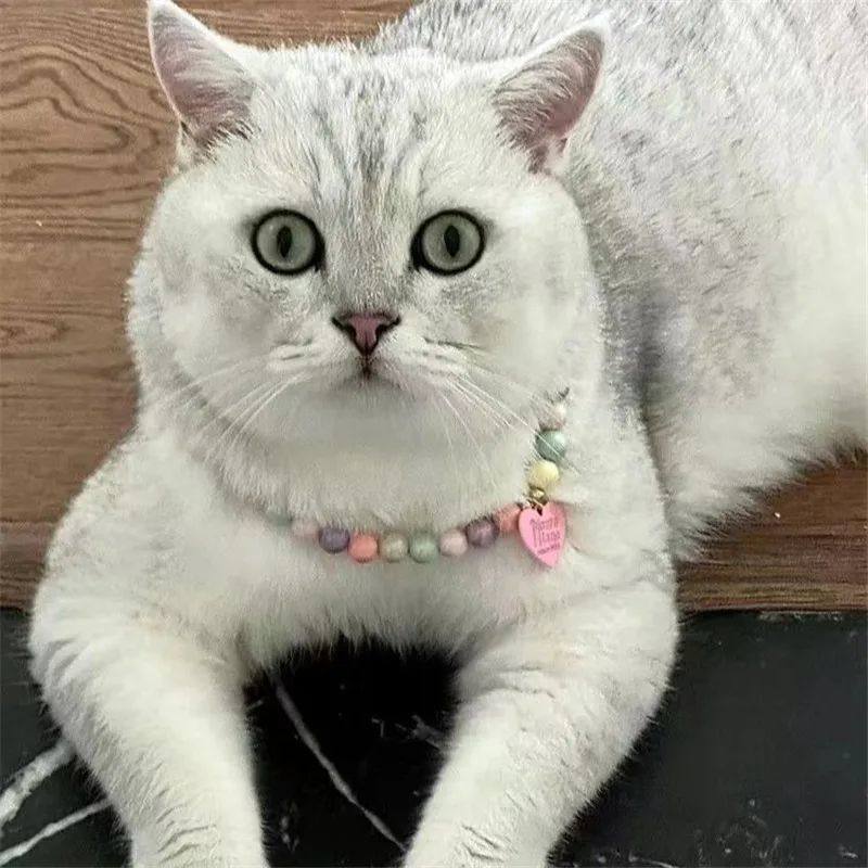 📚 Dog Cat Pearls Necklace Collar with Bling Heart Charm Pet Do