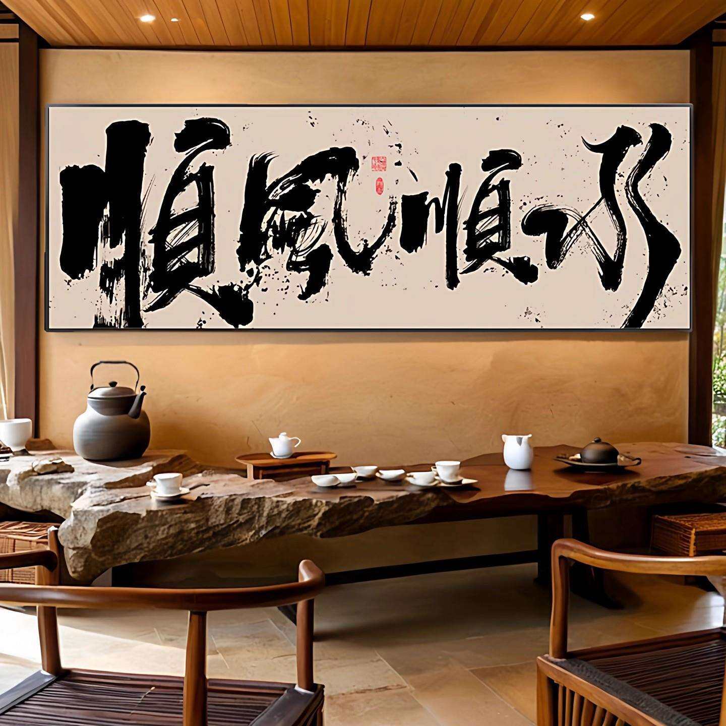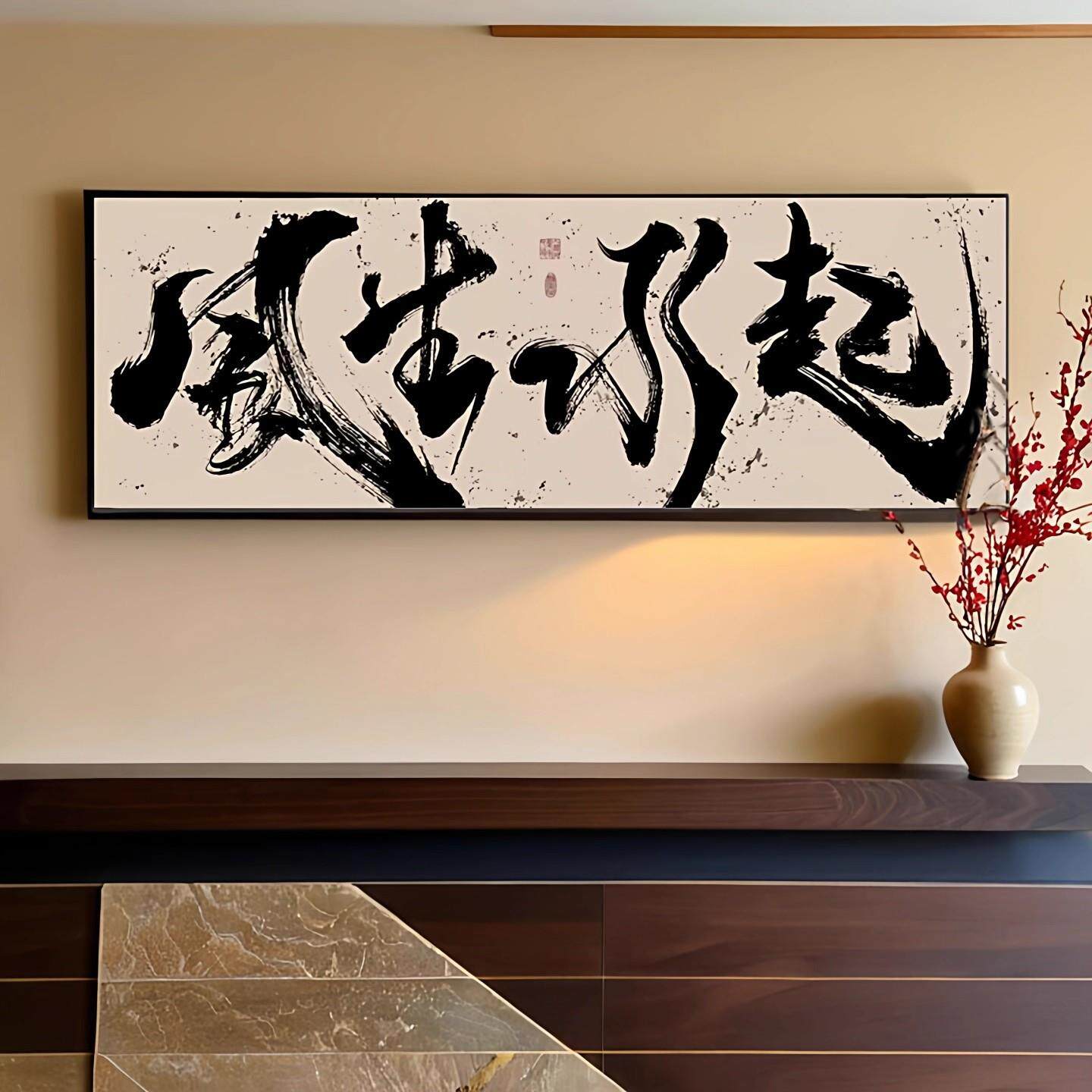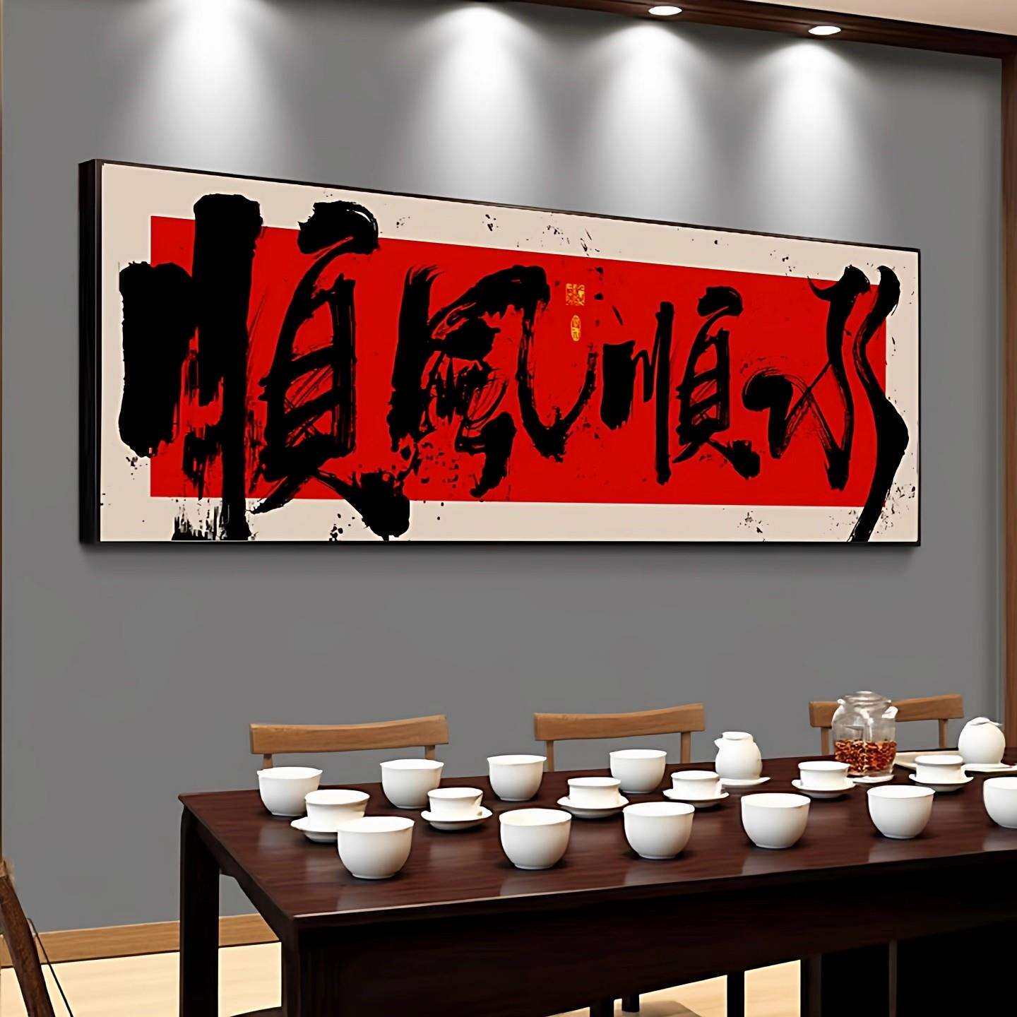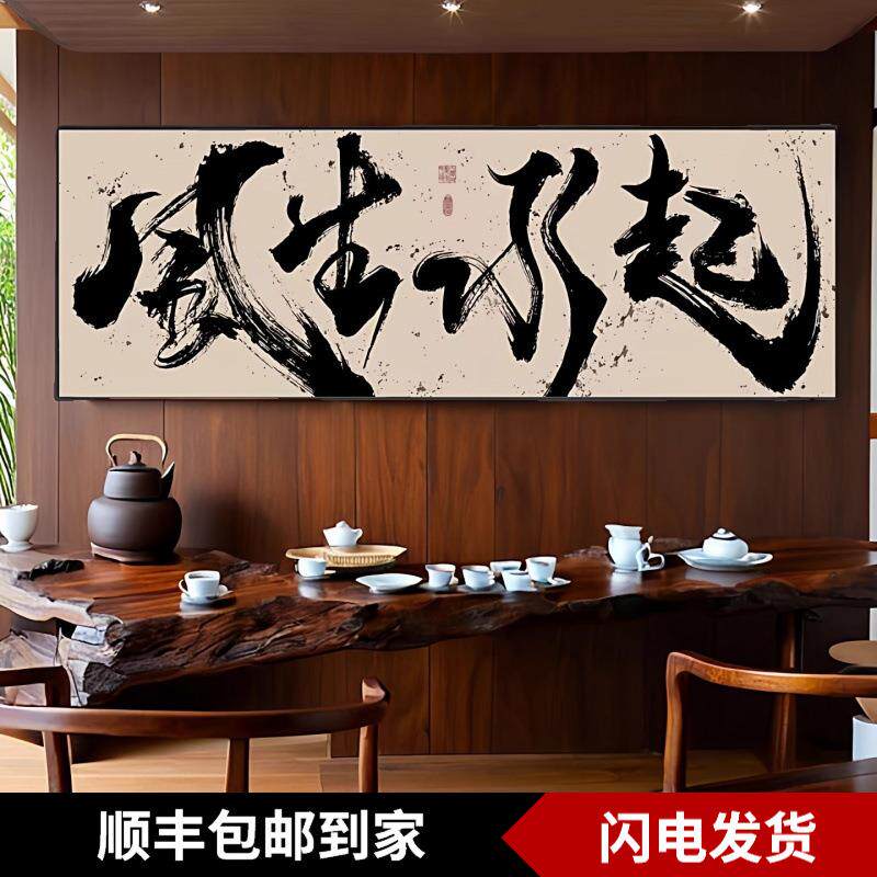 📚 办公室风生水起国潮风书法挂画书房茶室禅意壁画事在人为装饰字画