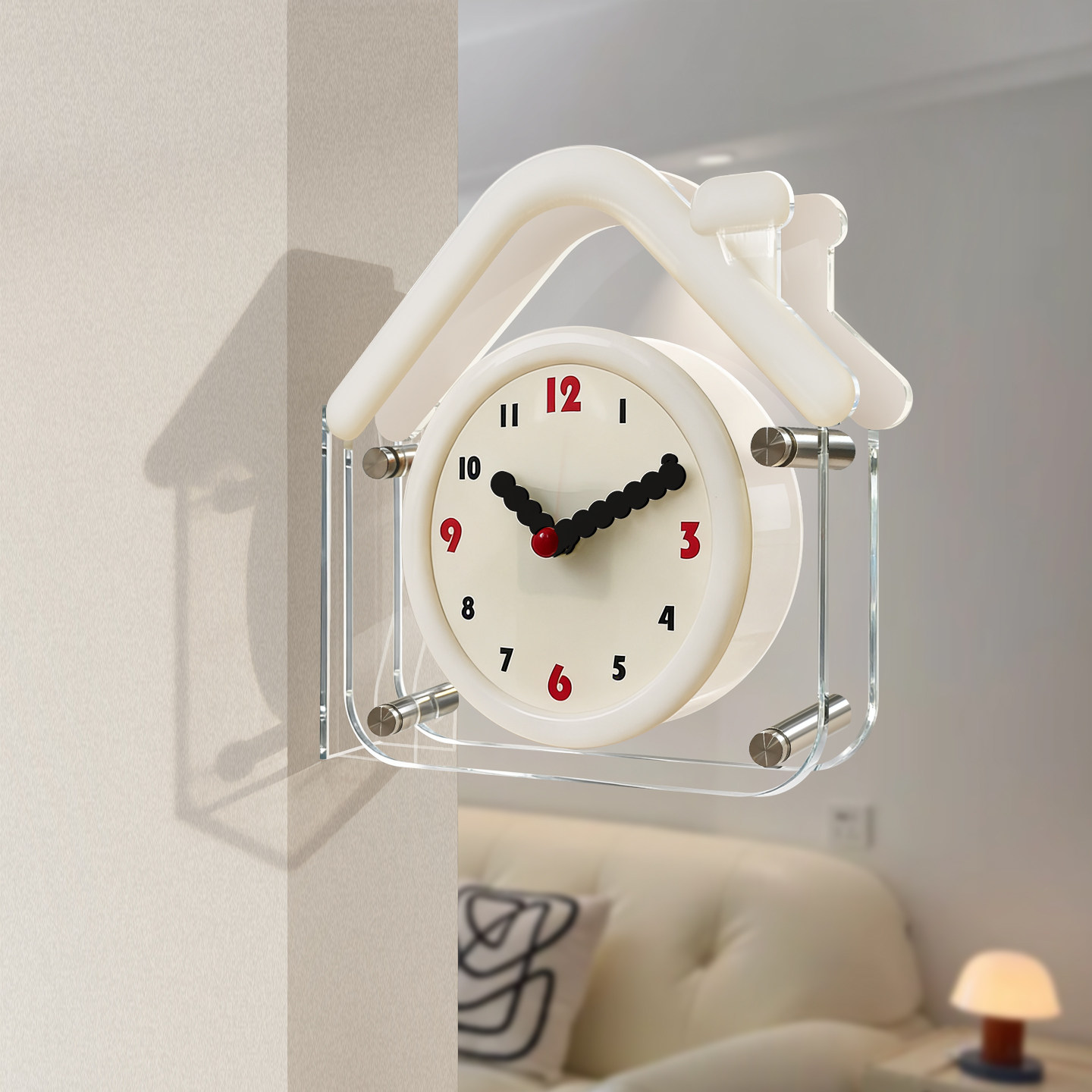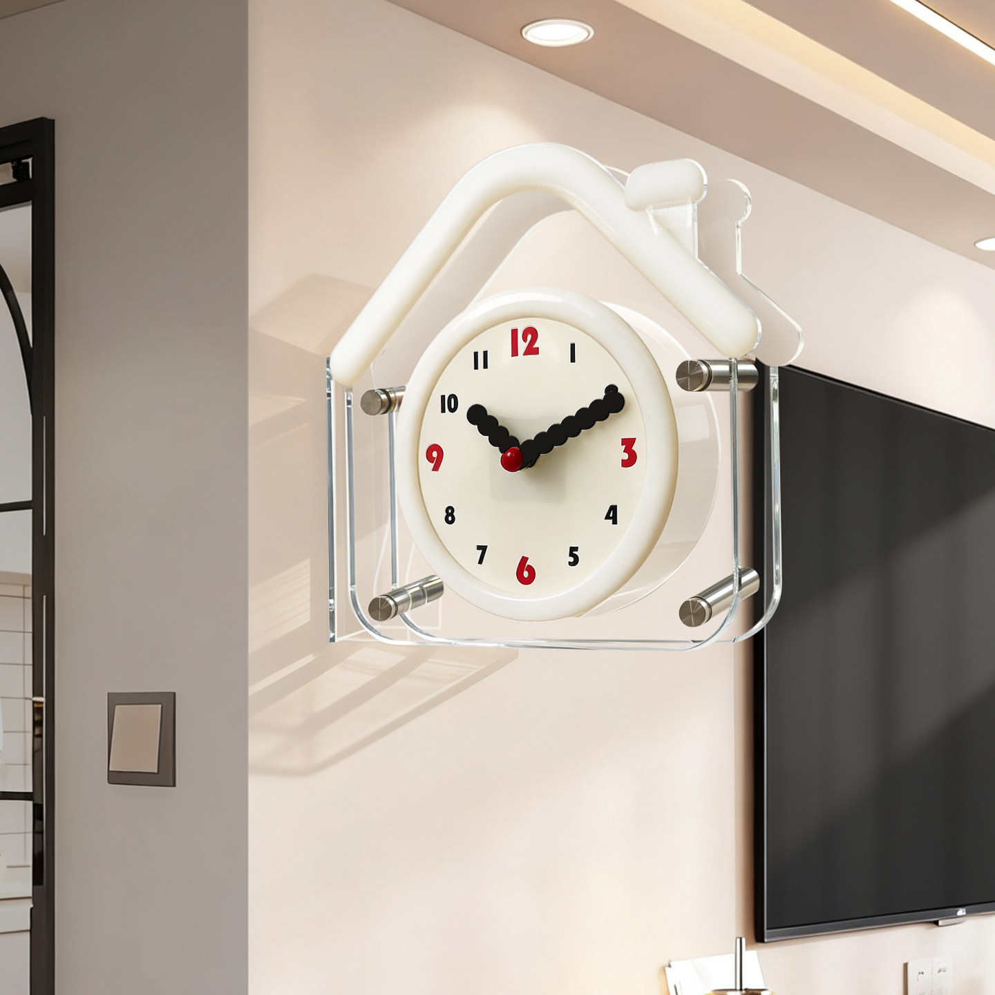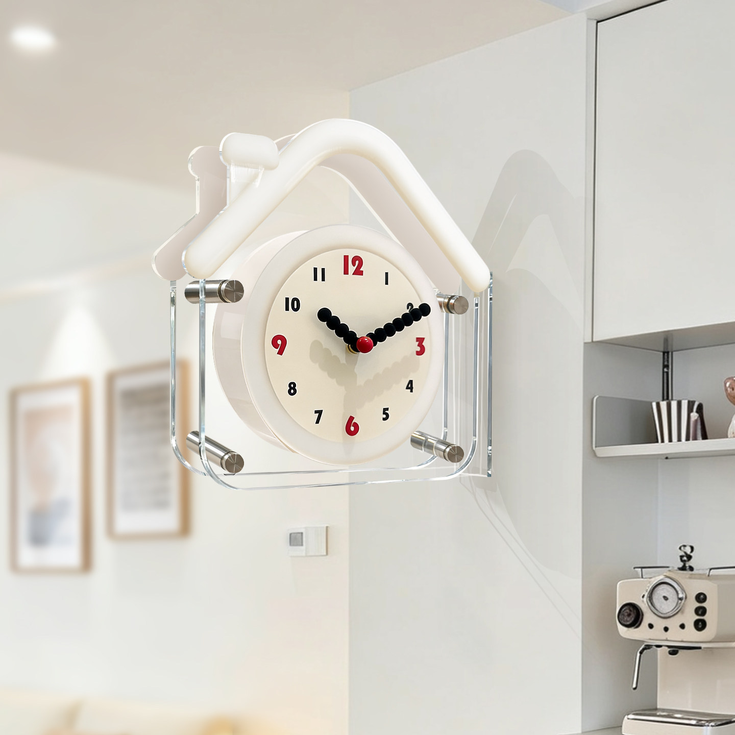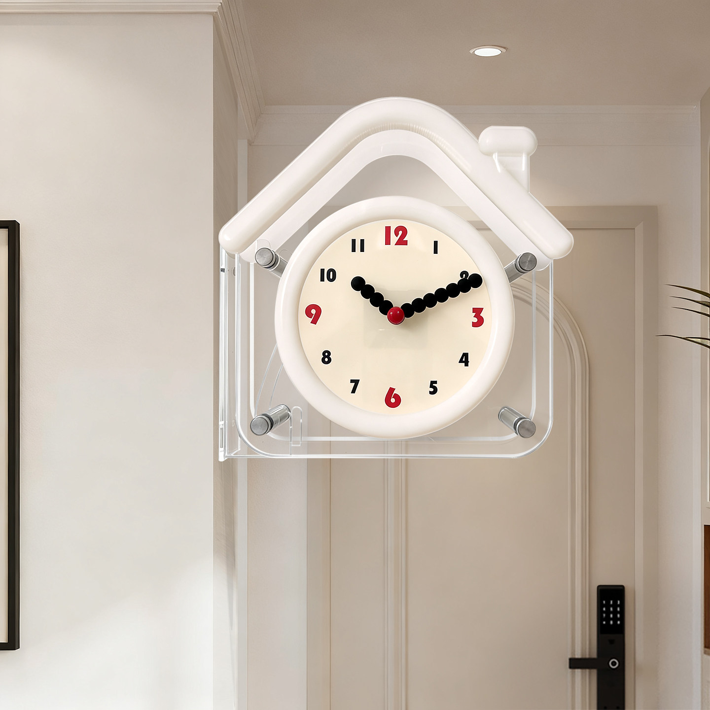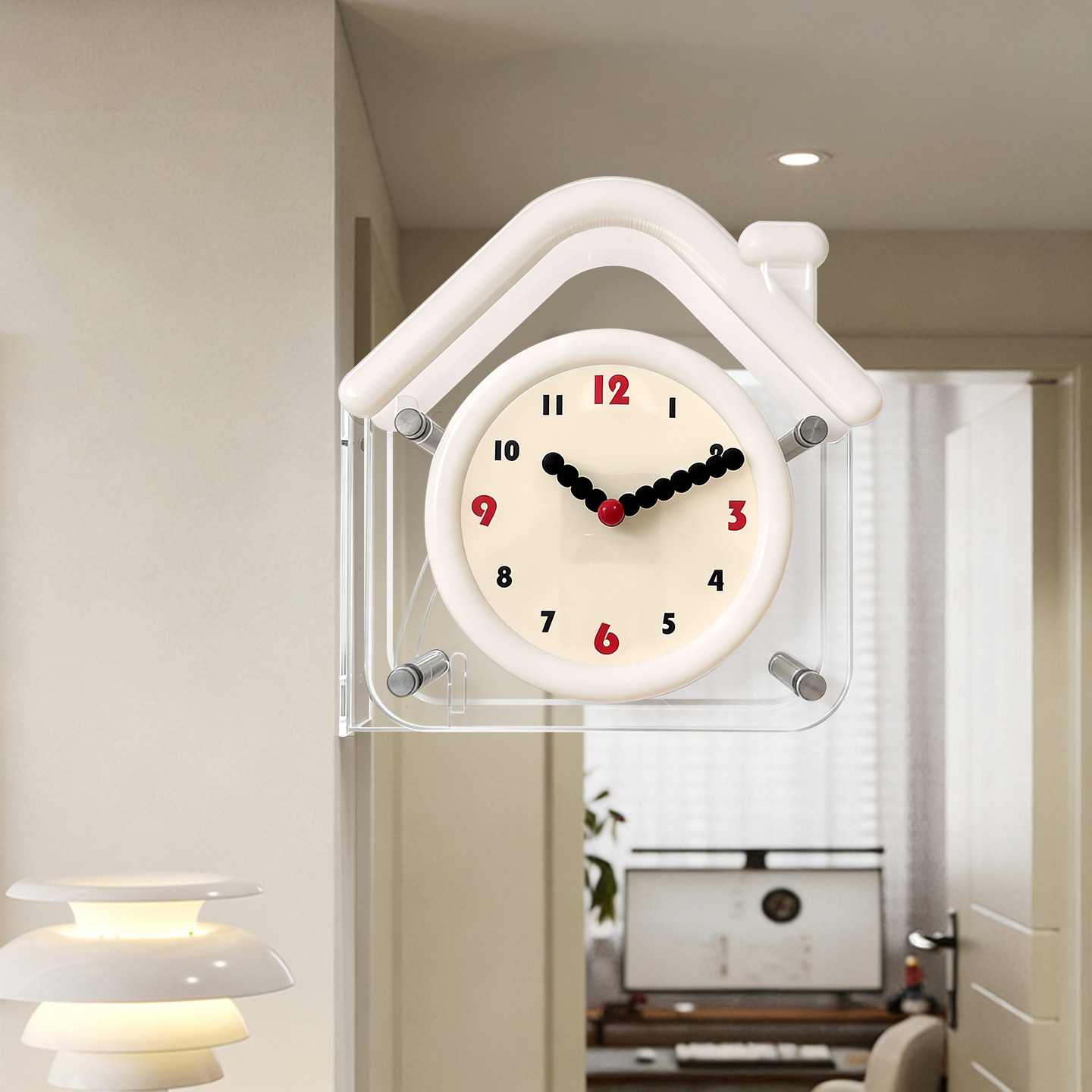 📚 双面挂钟客厅2026新款奶油风转角时钟高级感创意家用静音钟表挂墙
