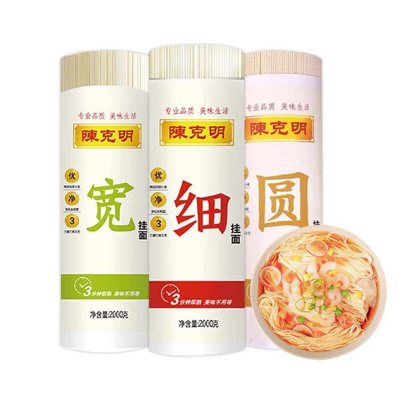 📚 陈克明宽细圆组合挂面2000g挂面面条龙须爽滑劲道速食面早餐拌面