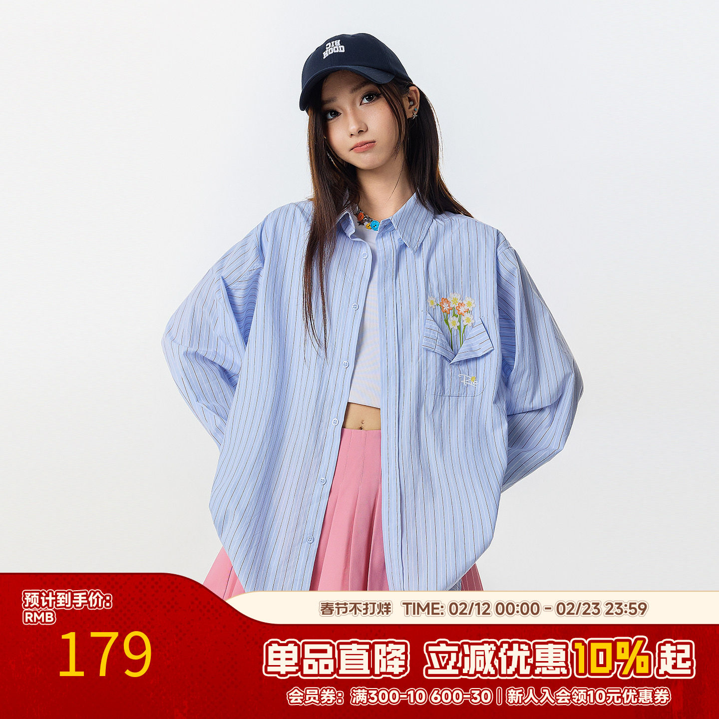 89¥ HU071 nhkHUmHCQfg¥ https://m.tb.cn/h.7wWPuaT RIC口袋花瓶刺绣蓝色条纹长袖衬衫男秋季 2025宽松情侣衬衣外套女 --------------------- 【原售价】599元 【现售价】219元。