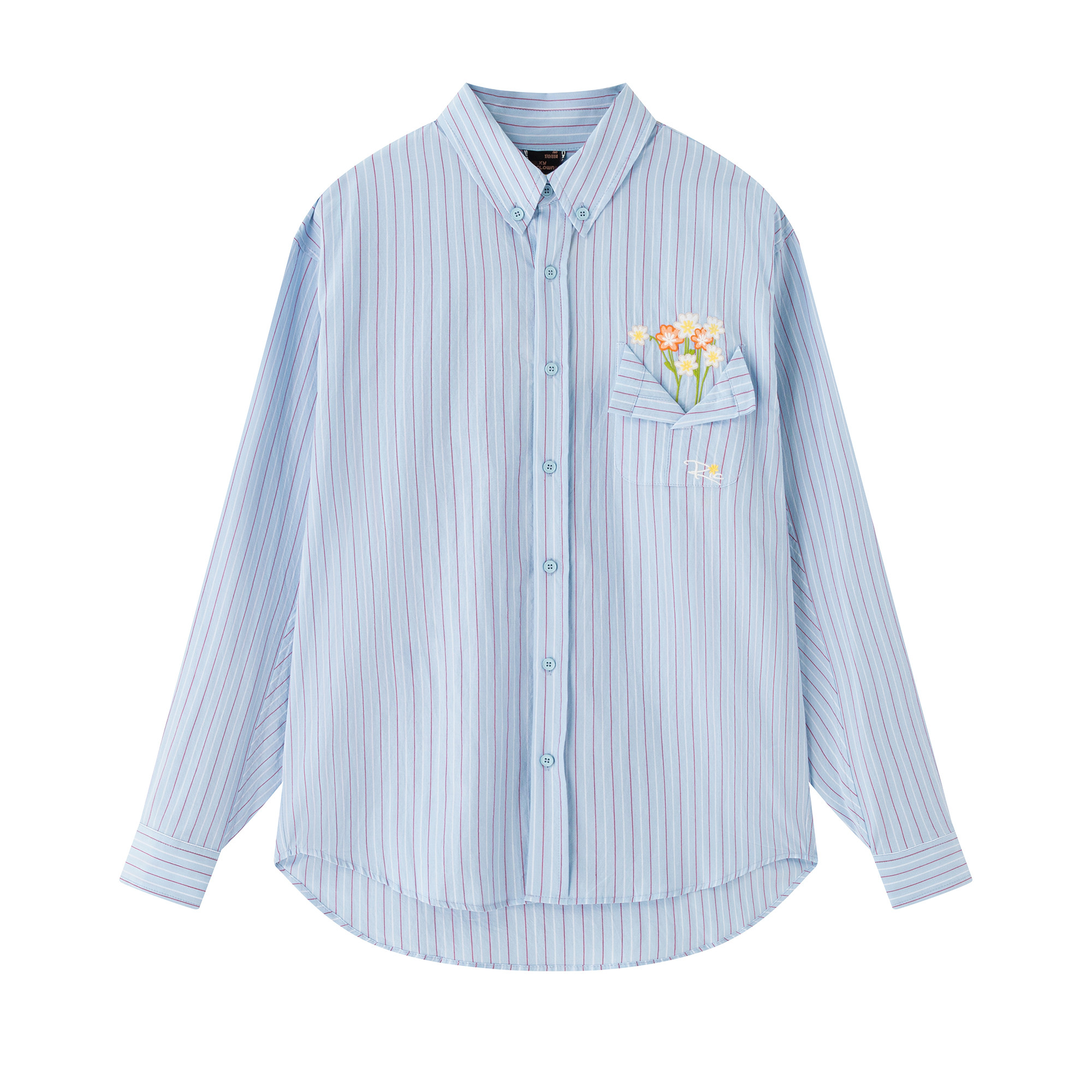 📚 RIC口袋花瓶刺绣蓝色条纹长袖衬衫男秋季 2025宽松情侣衬衣外套女