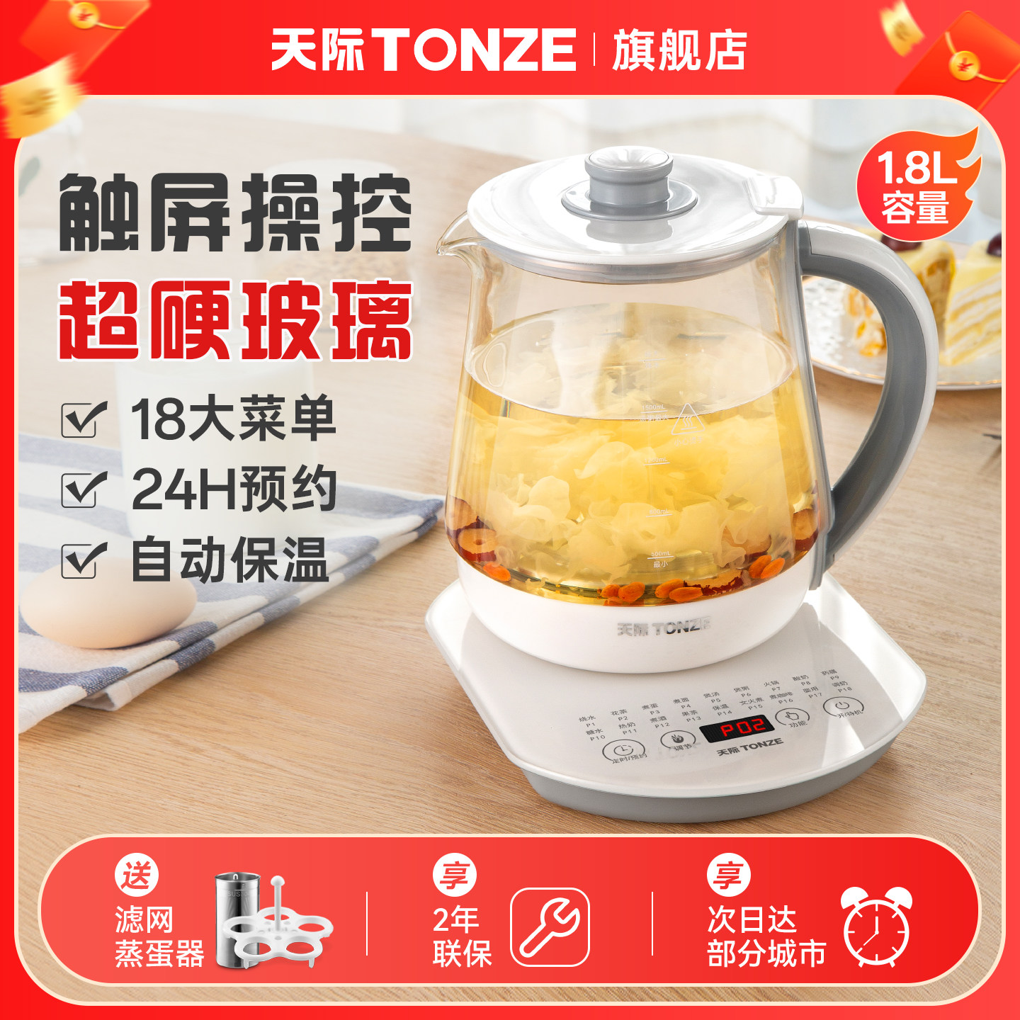 📚 天际养生壶家用多功能电热花茶壶高硼硅耐用玻璃养身煮茶器办公壶