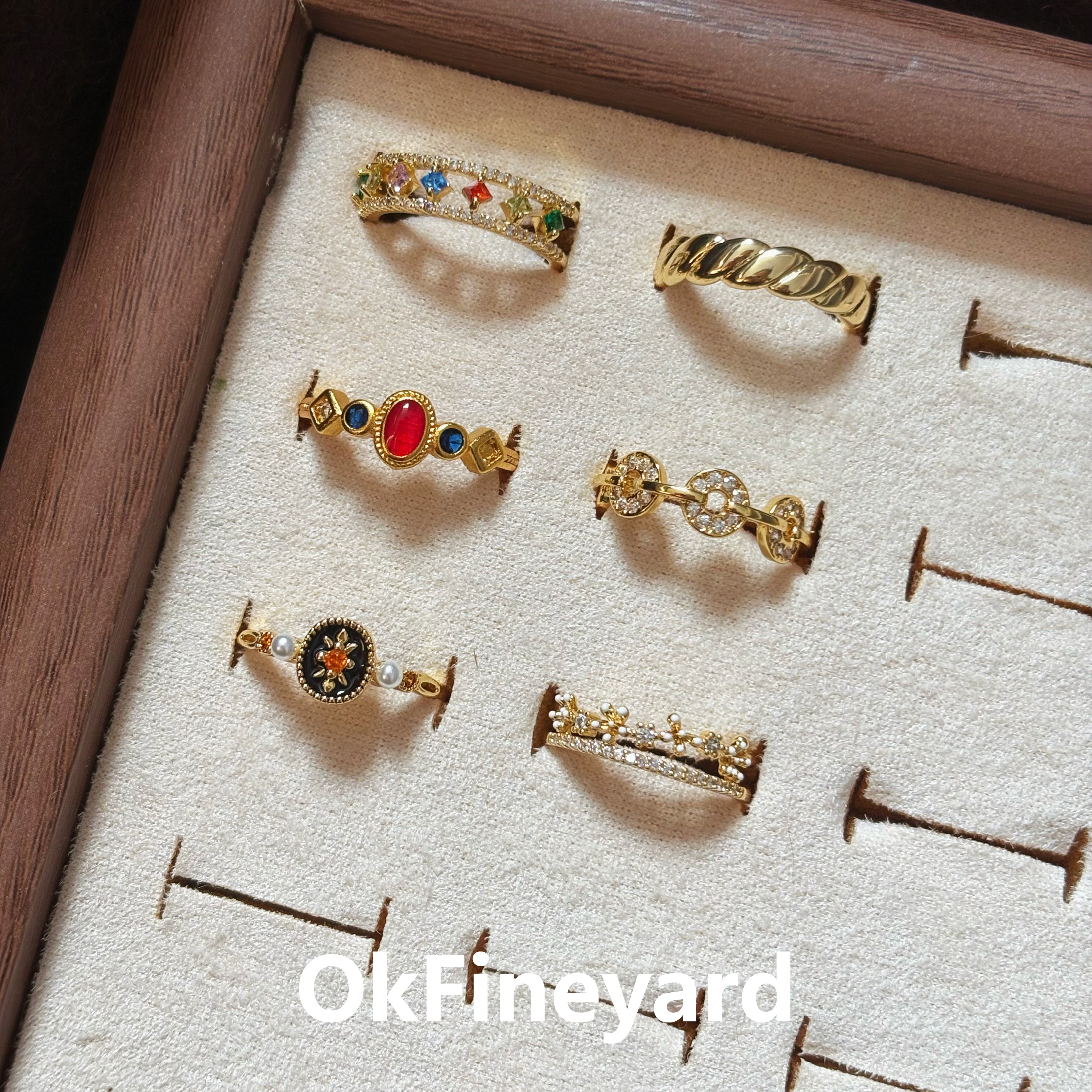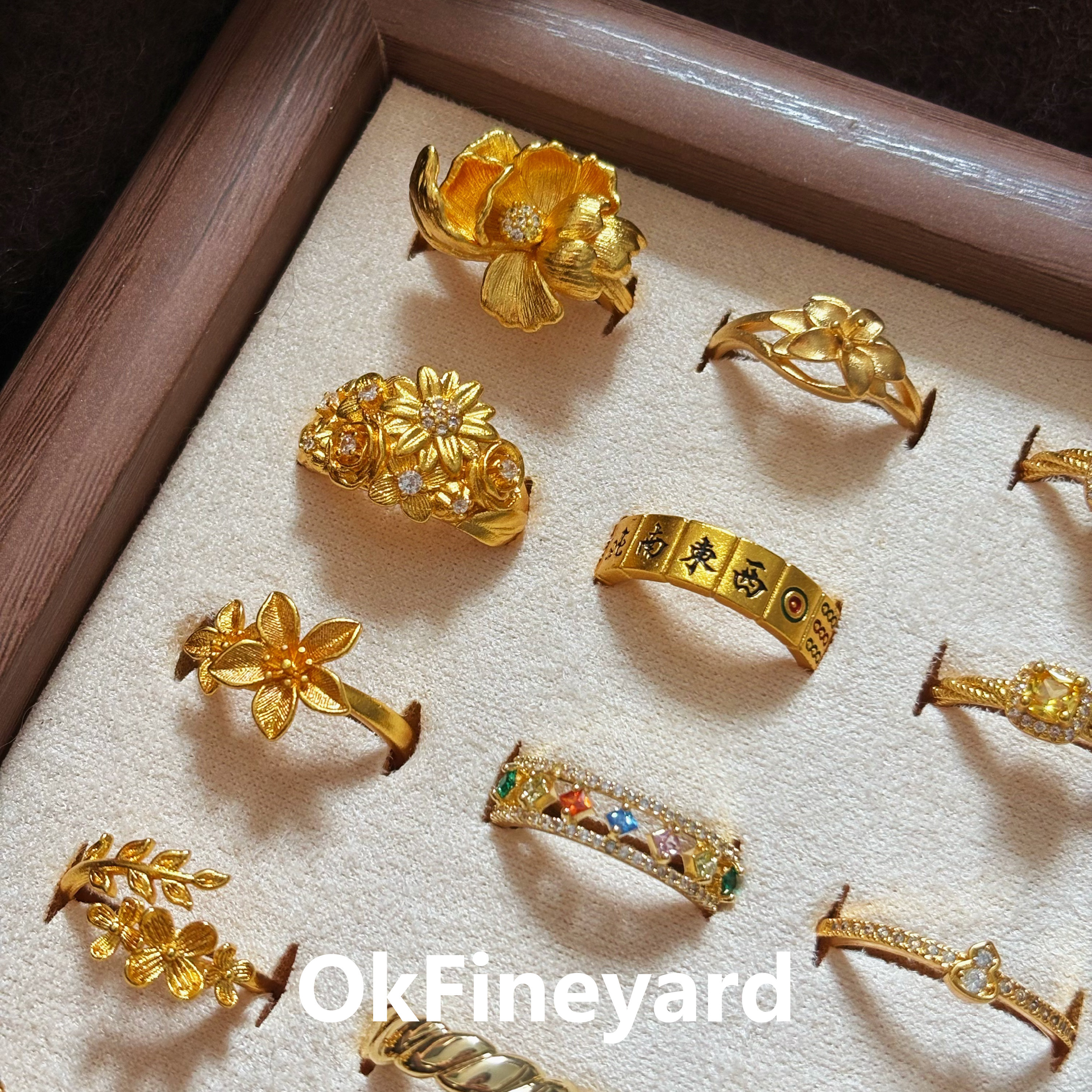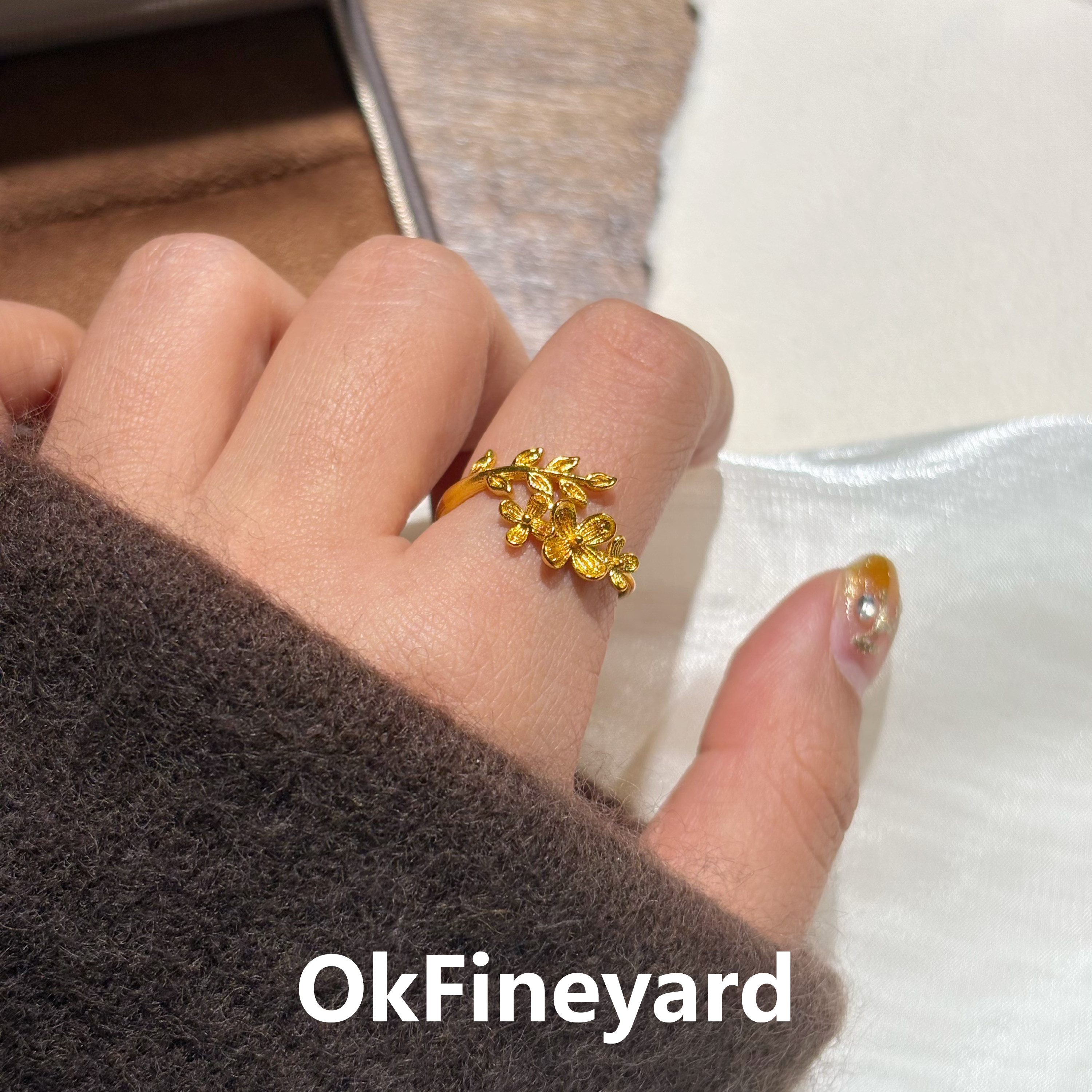 📚 OkFineyard金色戒指集合女士小众设计高级感花朵轻奢精致开口指环