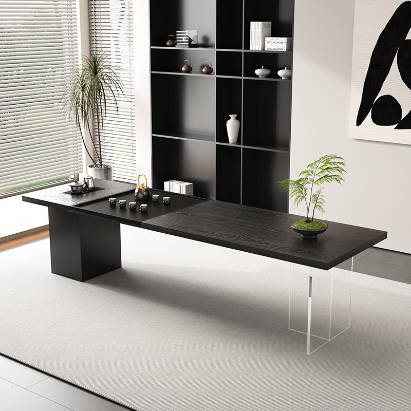 📚 实木大型老板黑色泡茶茶桌客厅办公室家用大板茶台现代轻奢高级感