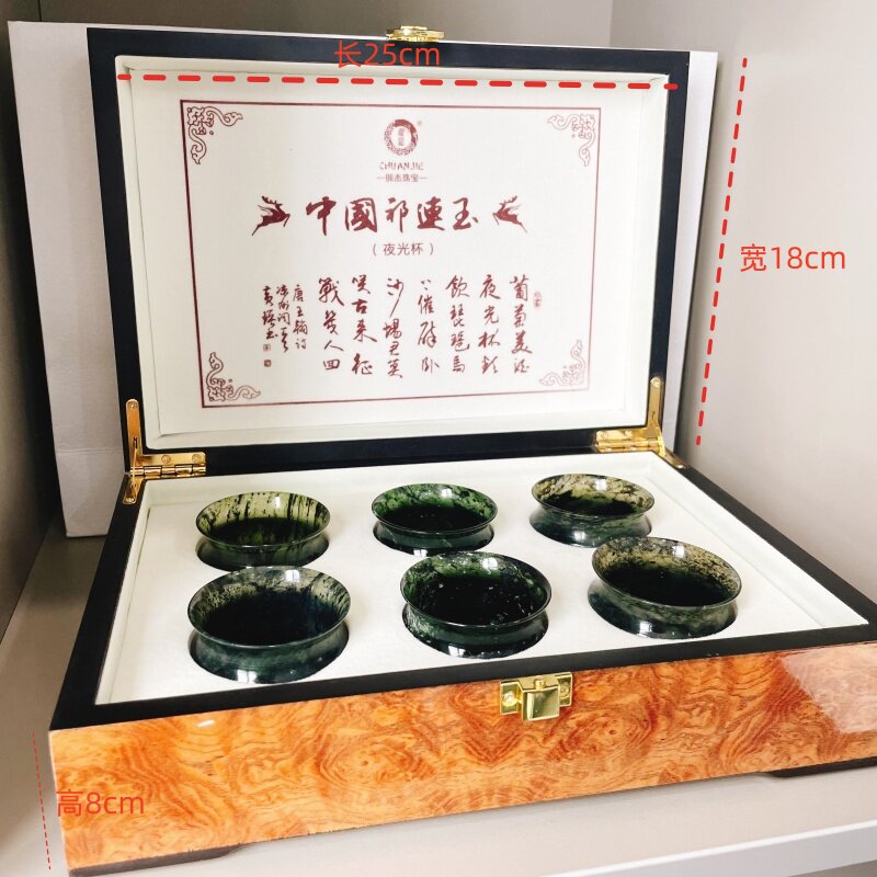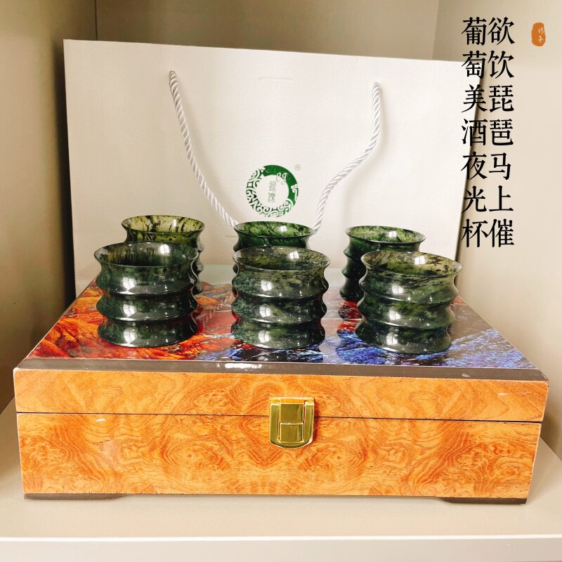 📚 夜光杯套装祁连墨玉6件套竹节杯礼盒手提袋馈赠佳品爆款酒杯茶杯