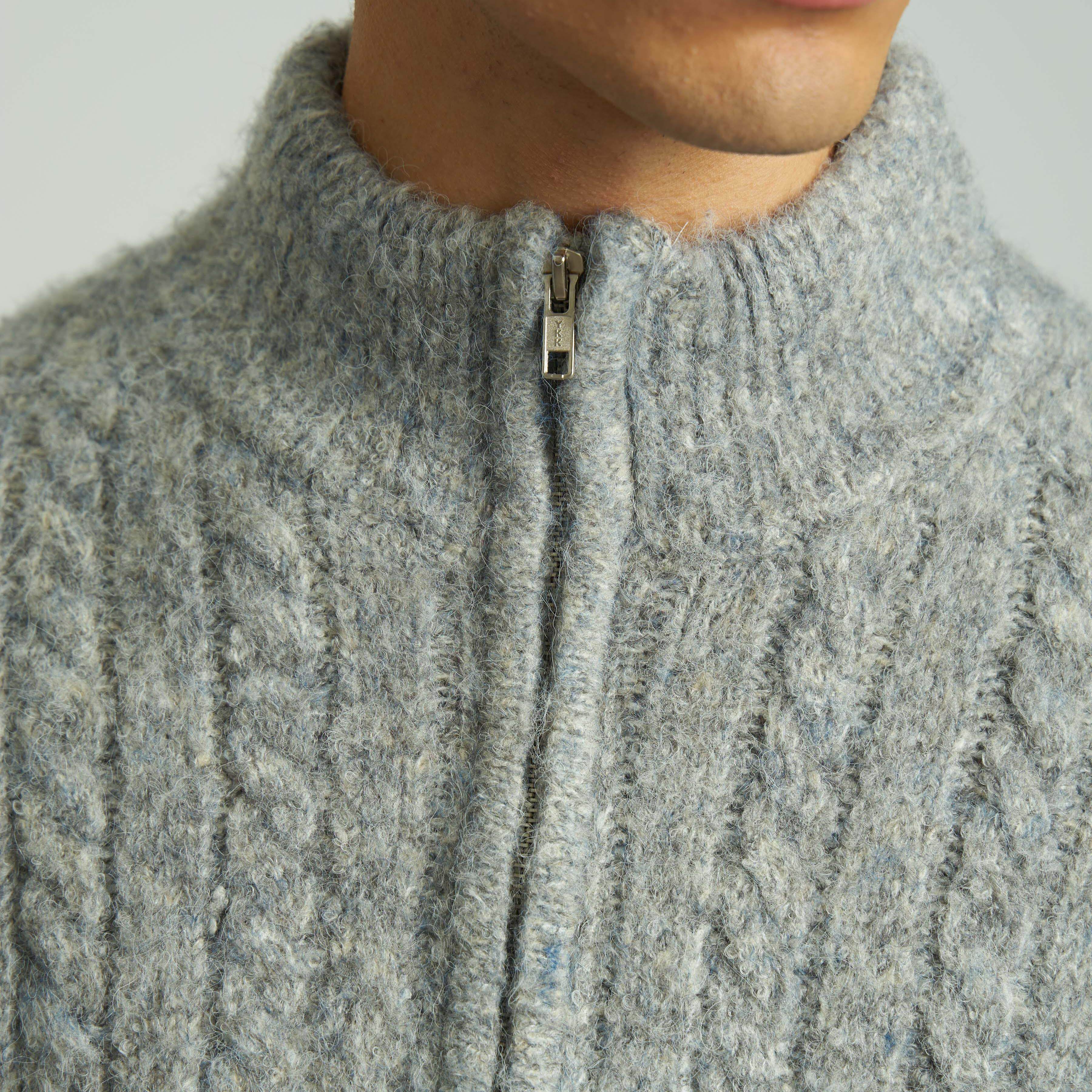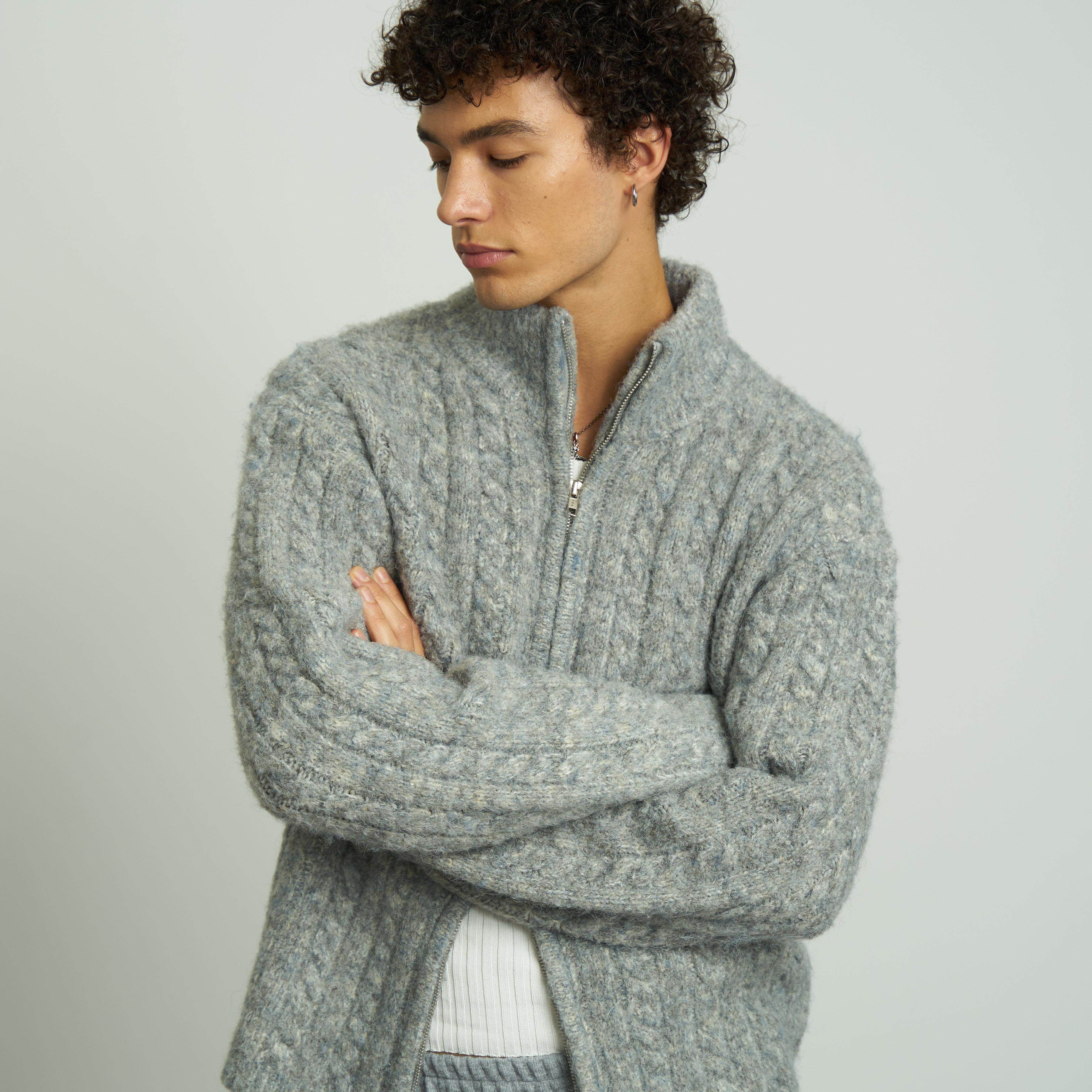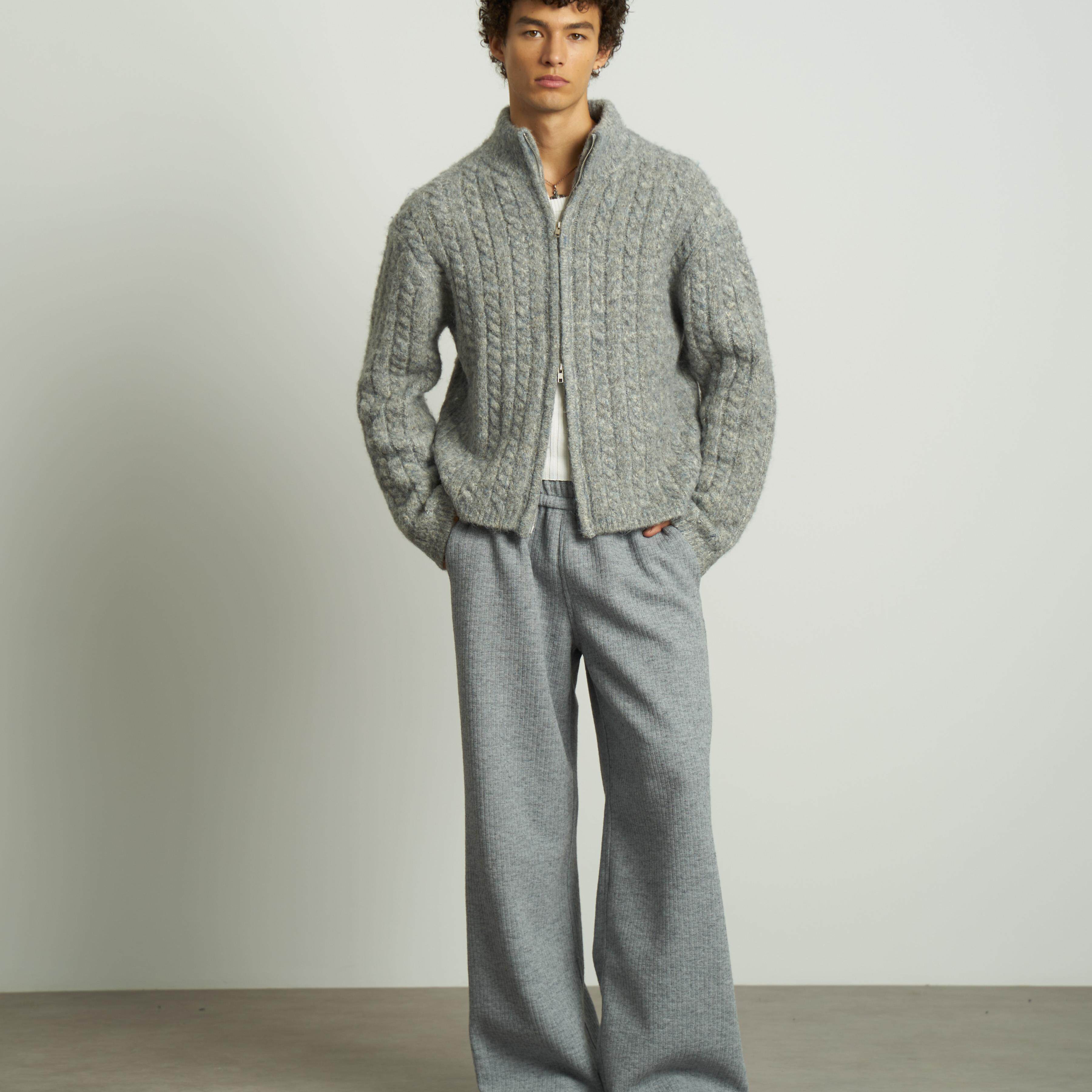 📚 RETRO21 R21羊毛混纺花灰色扭花双拉链开衫