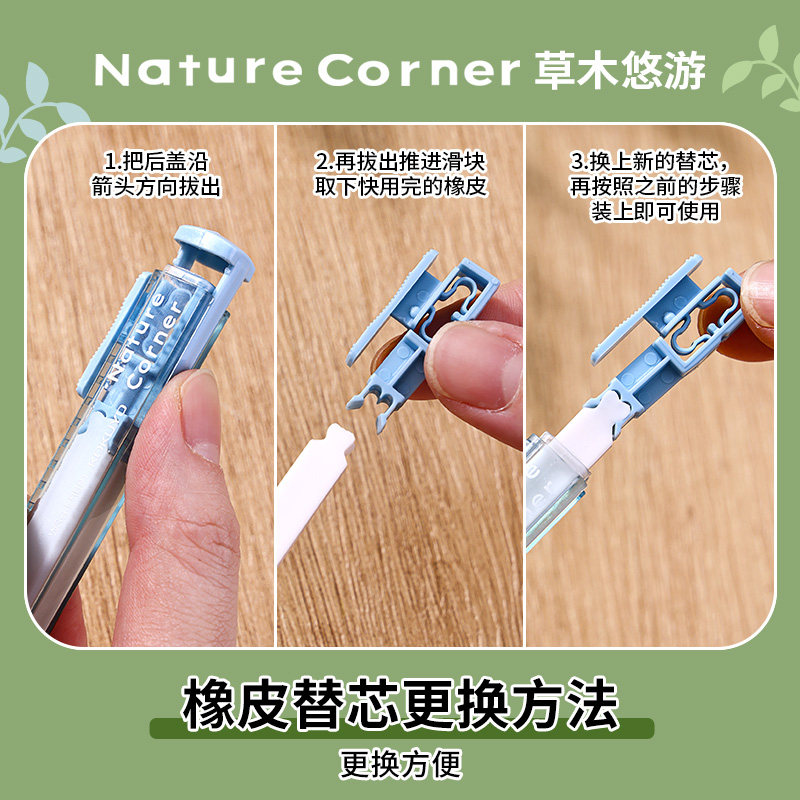 📚 日本KOKUYO国誉Nature Corner草木悠游橡皮细细擦象皮擦推拉笔形橡皮擦笔式伸缩小学生儿童推动橡皮笔