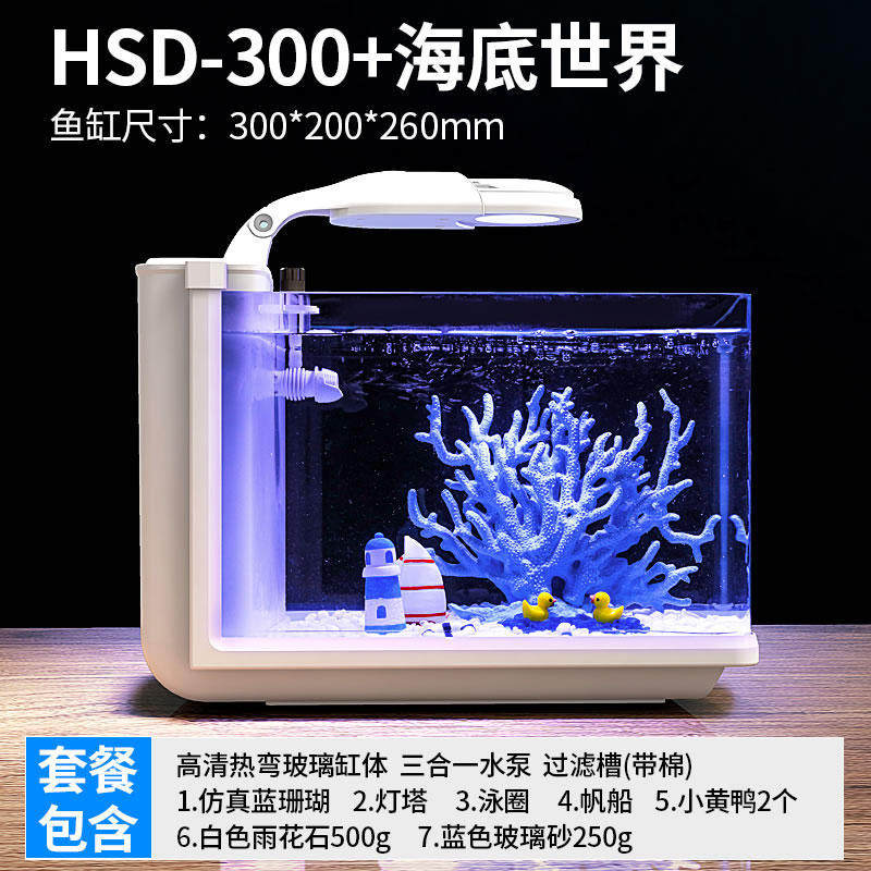 📚 森森桌面热弯鱼缸侧滤客厅小型生态金鱼缸家用免换水玻璃水族箱