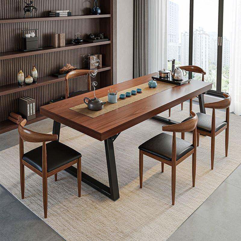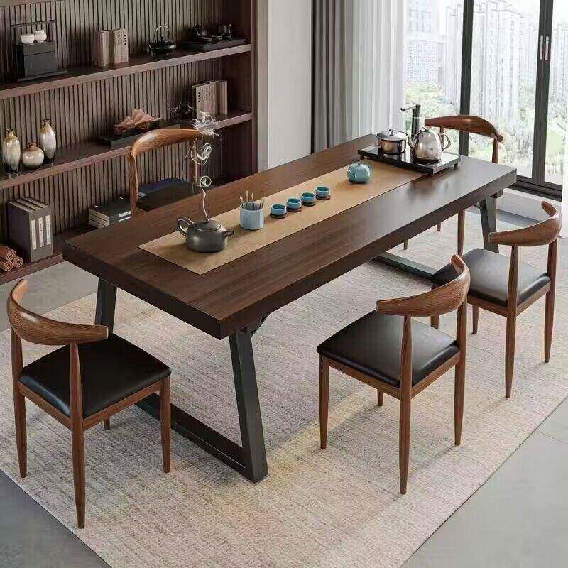 📚 实木色茶公桌椅组合一桌椅喝NKR茶桌新五几中式商谈办大板泡茶桌