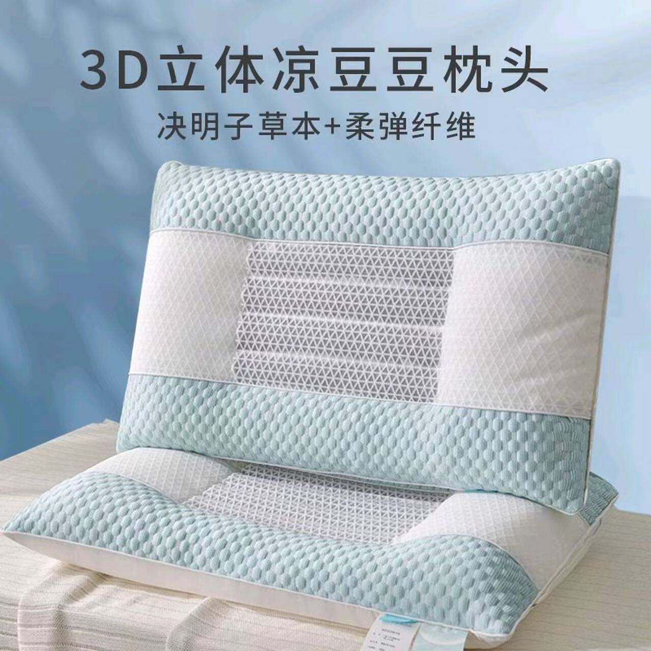 📚 决明子凉豆豆成人家用护颈椎助睡眠枕头透气枕夏季学生凉感枕芯男