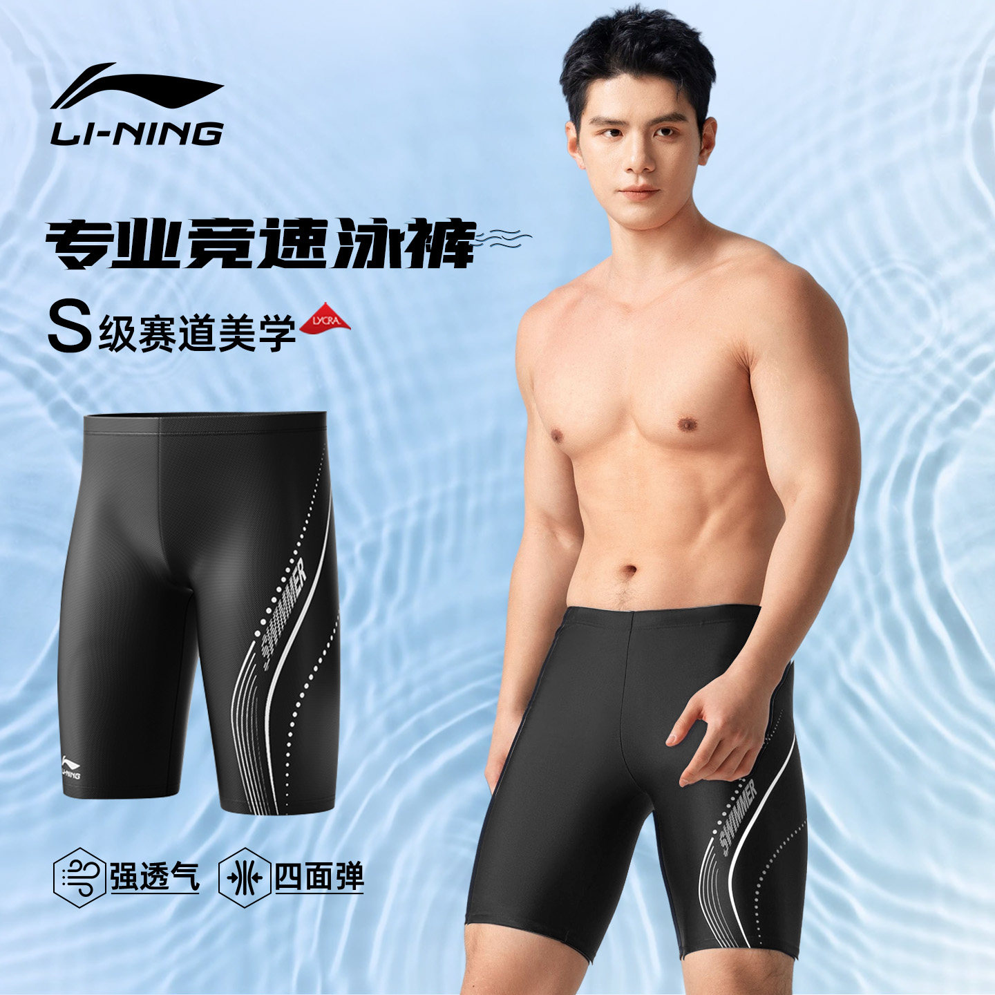 📚 李宁游泳裤男款专业竞速2026新款及膝五分裤成人大码游泳装备全套