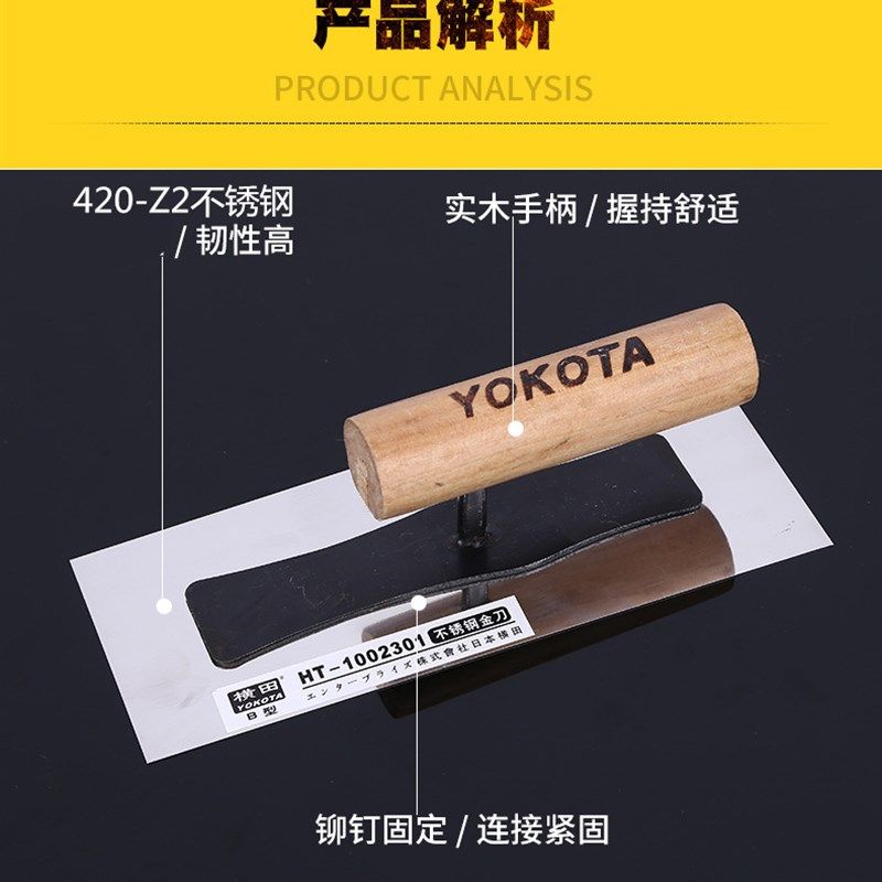 📚 横田不锈钢收光刀硅藻泥打底工具光滑无钉不锈钢抹子批刀油工铁板