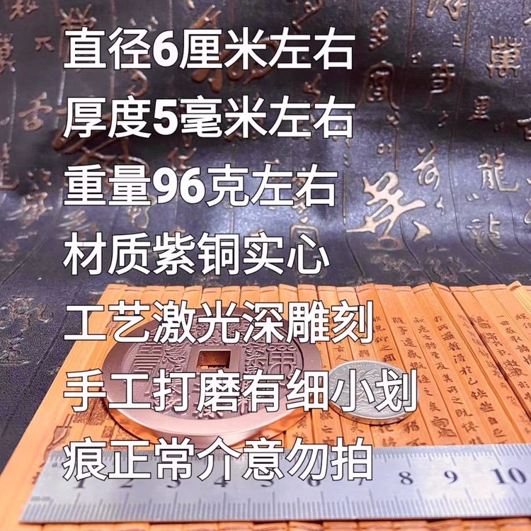 📚 大号60mm紫铜山鬼雷霆八卦图花钱吊坠压祟厌胜钱新古钱币铜钱加厚