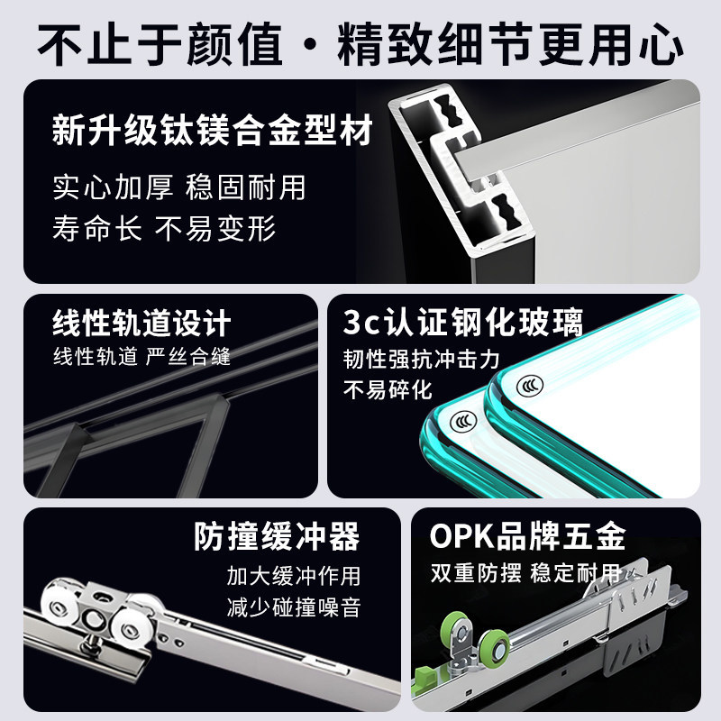📚 定制阳台客厅厨房推拉门完美系统吊轨三联动极窄边框钢化玻璃移门