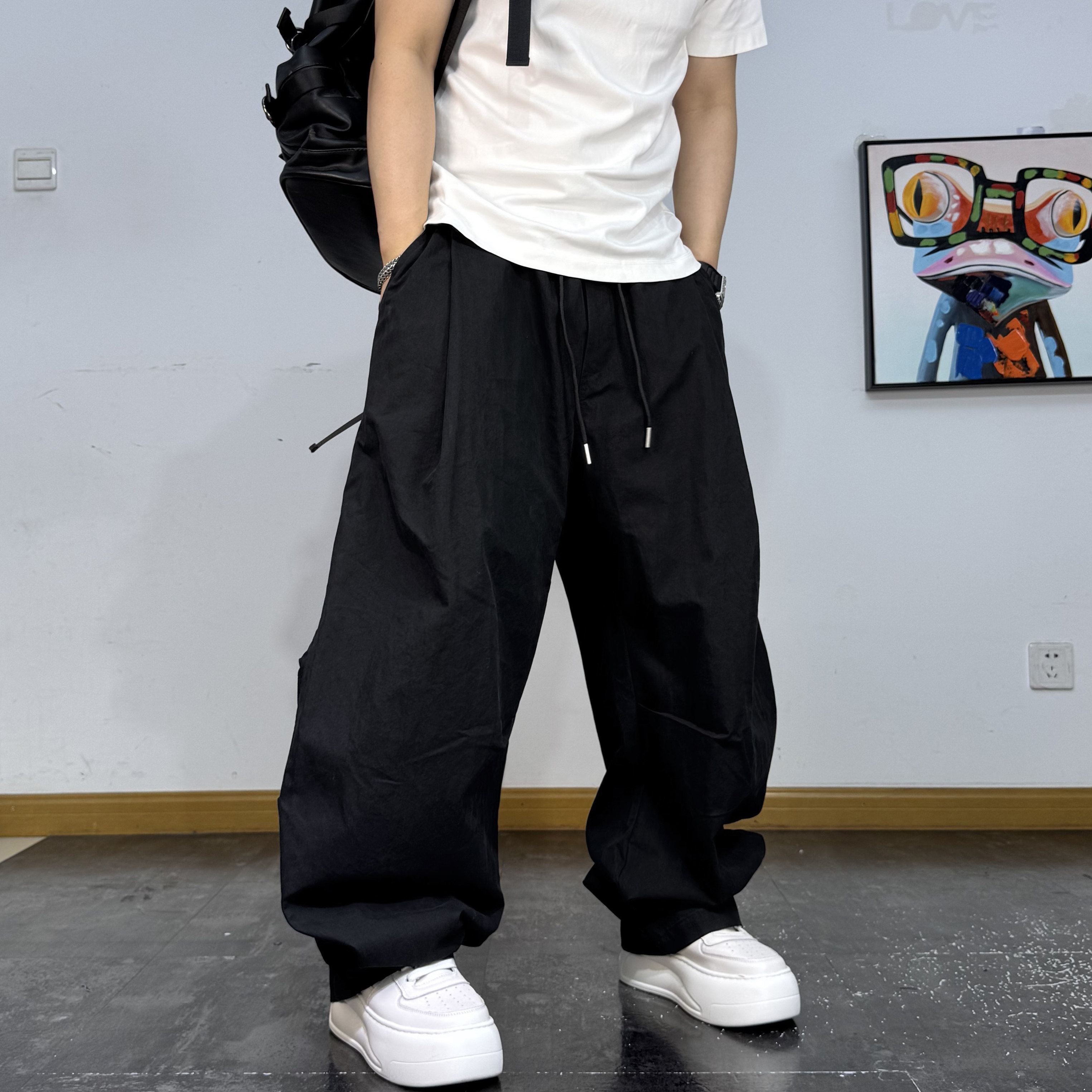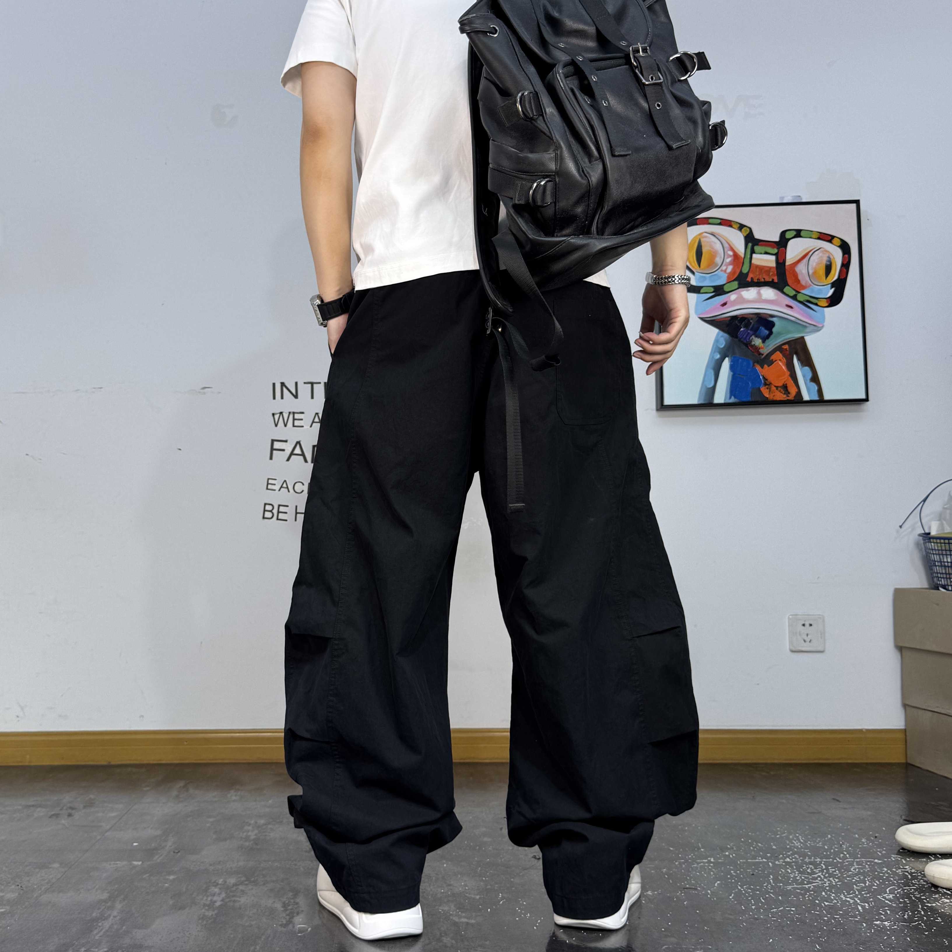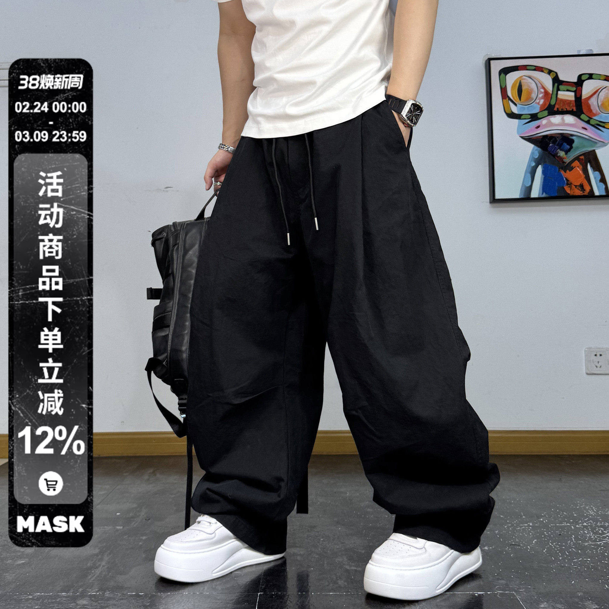 📚 秋季新款美式重磅加绒弯刀休闲裤男宽松阔腿工装裤子垂感直筒长裤