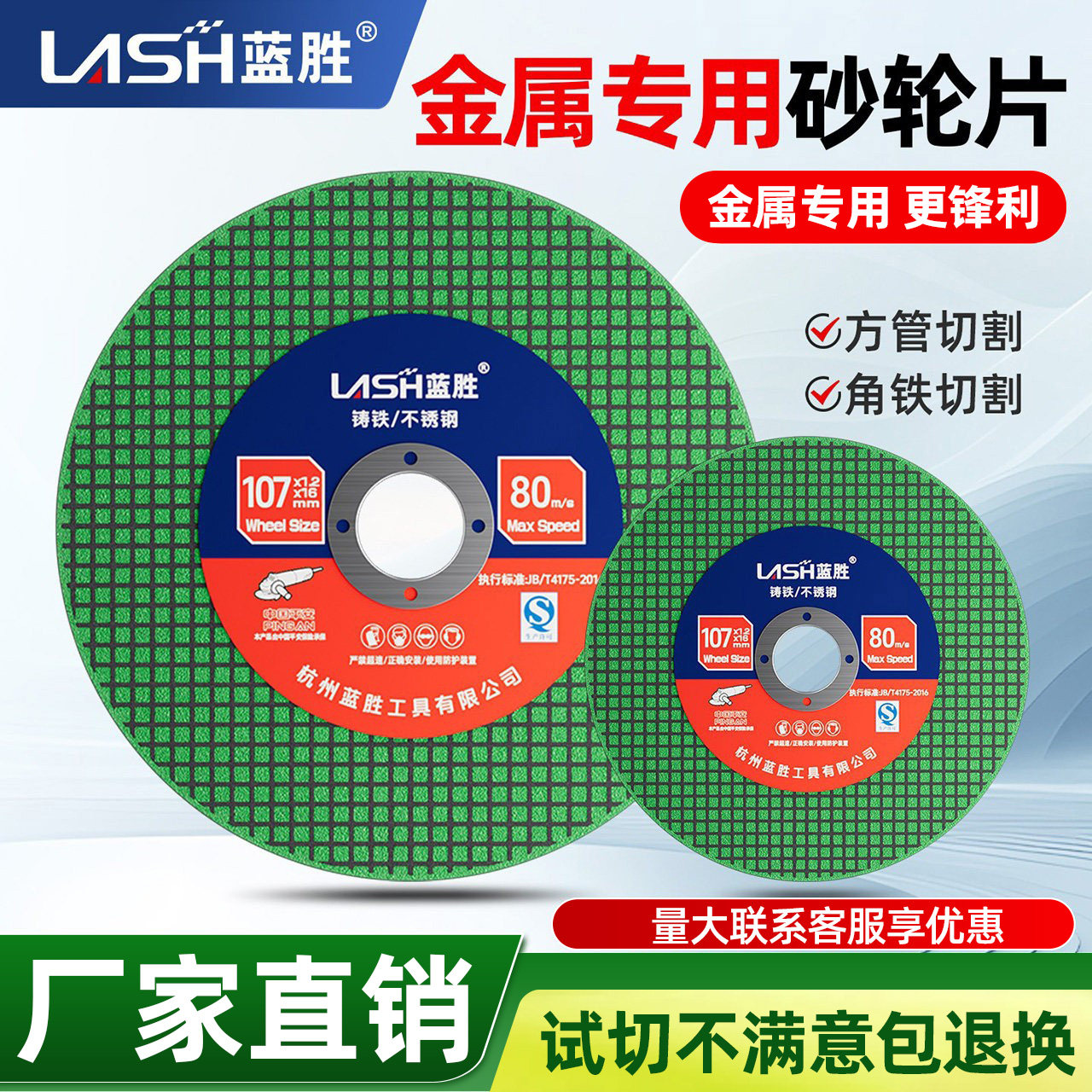 📚 蓝胜树脂砂轮片不锈钢切割片100型金属角铁角磨机加厚双网圆锯片