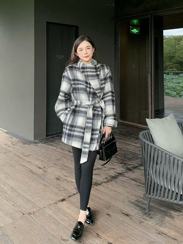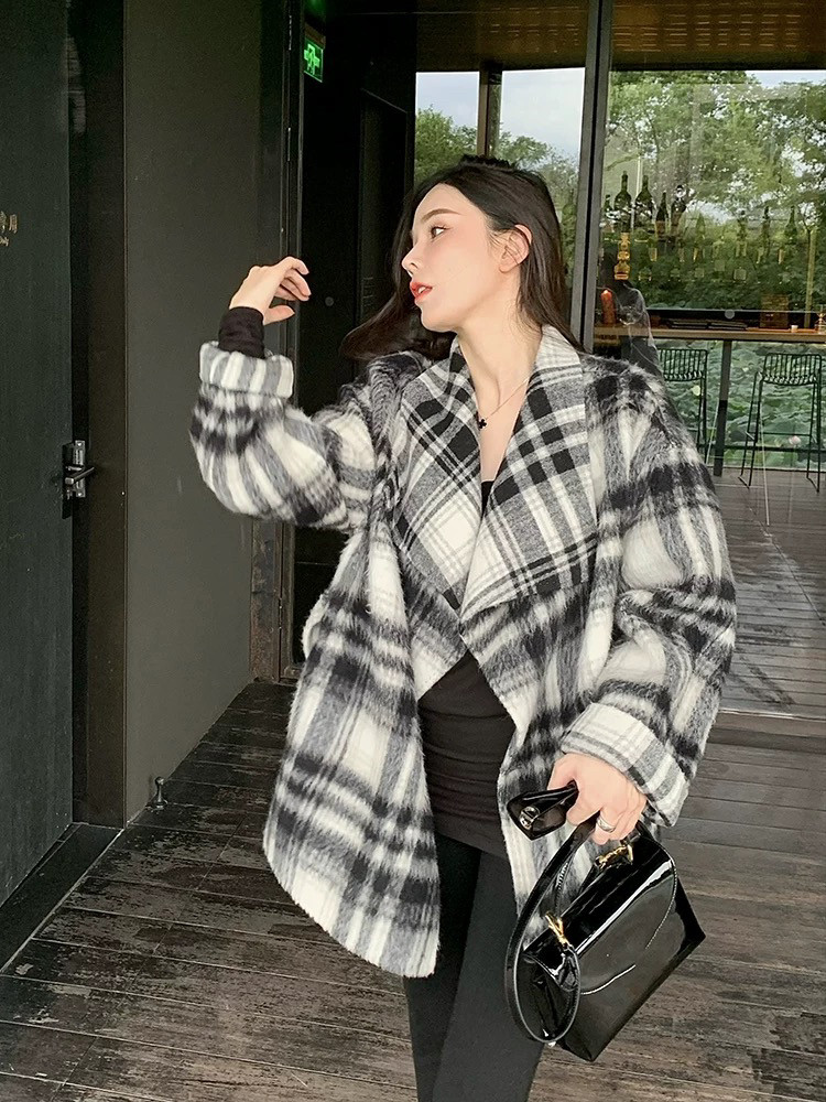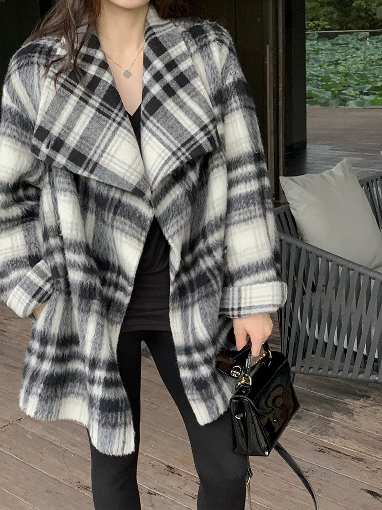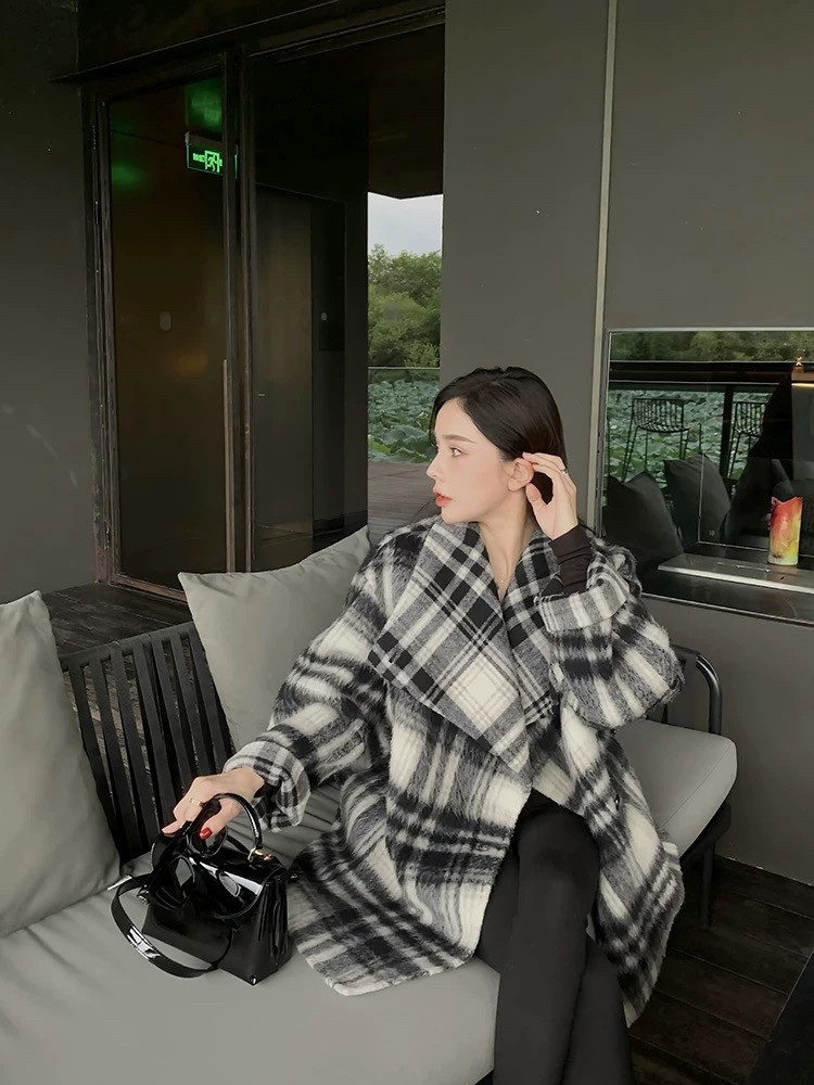 📚 【格调大衣】重磅气质格纹羊毛大衣女设计感复古宽松显瘦格子外套