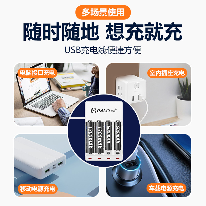 📚 星威5号充电电池7号大容量五号七号电池充电器套装8节通用鼠标玩具遥控镍氢USB可充电1300毫安1.2v