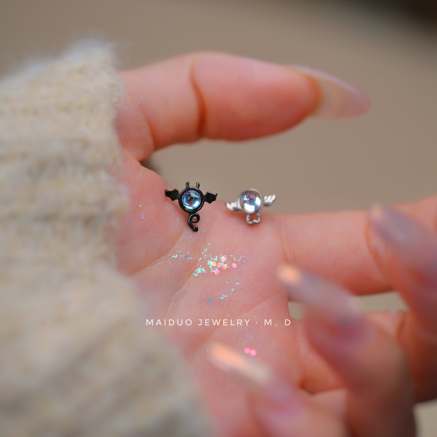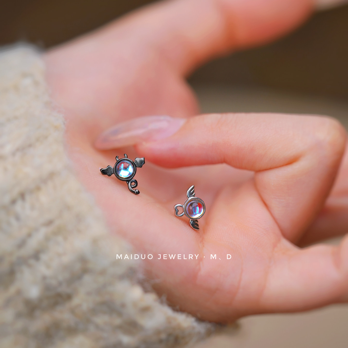 📚 【恶魔和天使】s999足银个性创意耳钉高级感新款小众显脸瘦可爱酷