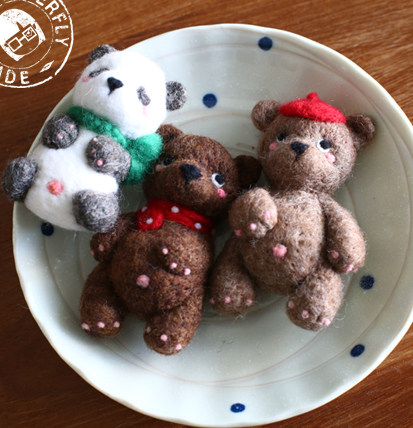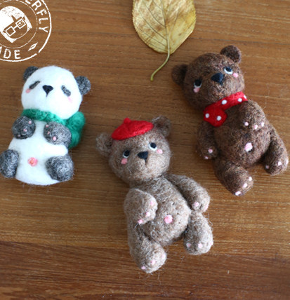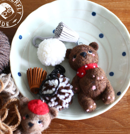 📚 【森林与海】AFTERFLY原创秋冬萌软羊毛毡绒绒球小熊胸针 钥匙扣