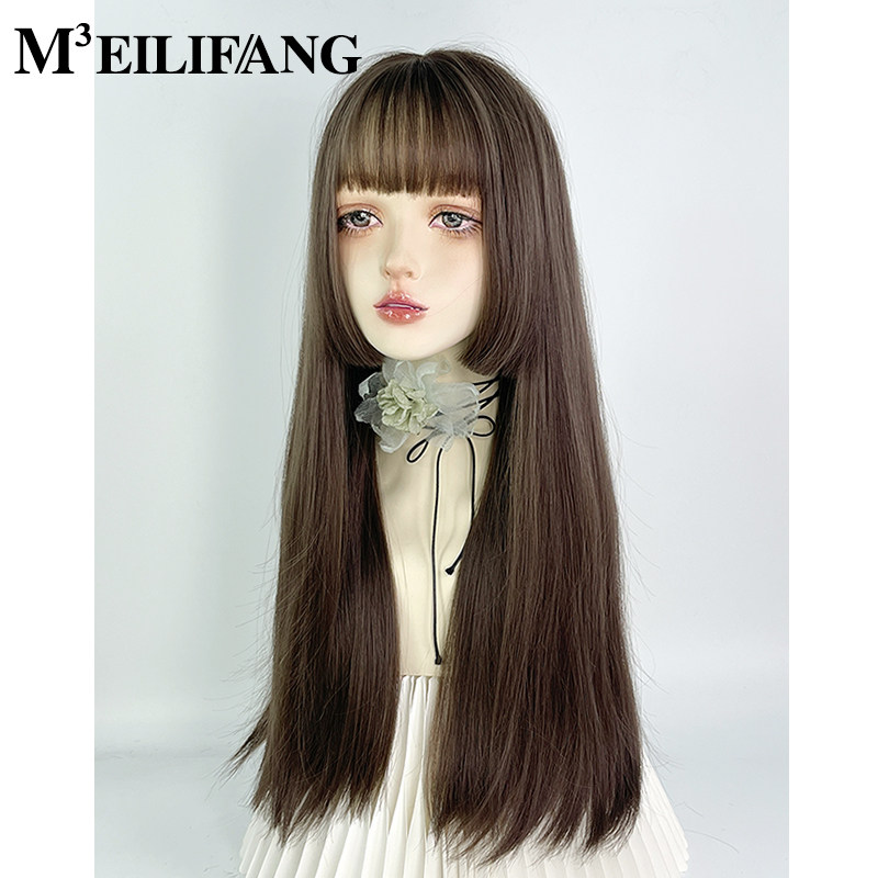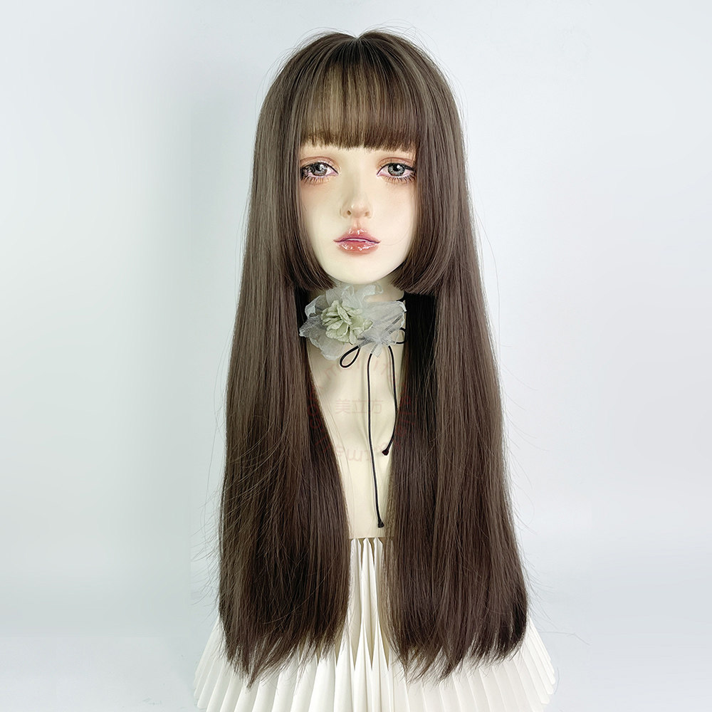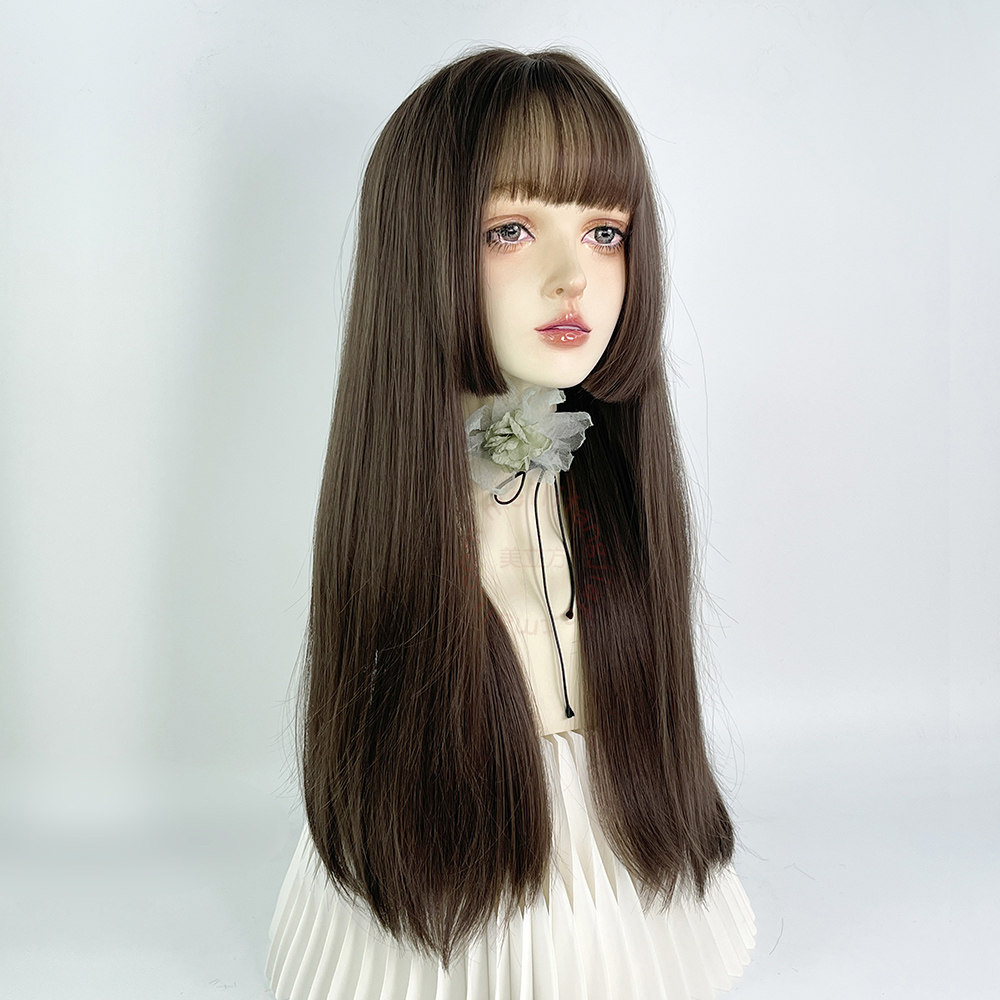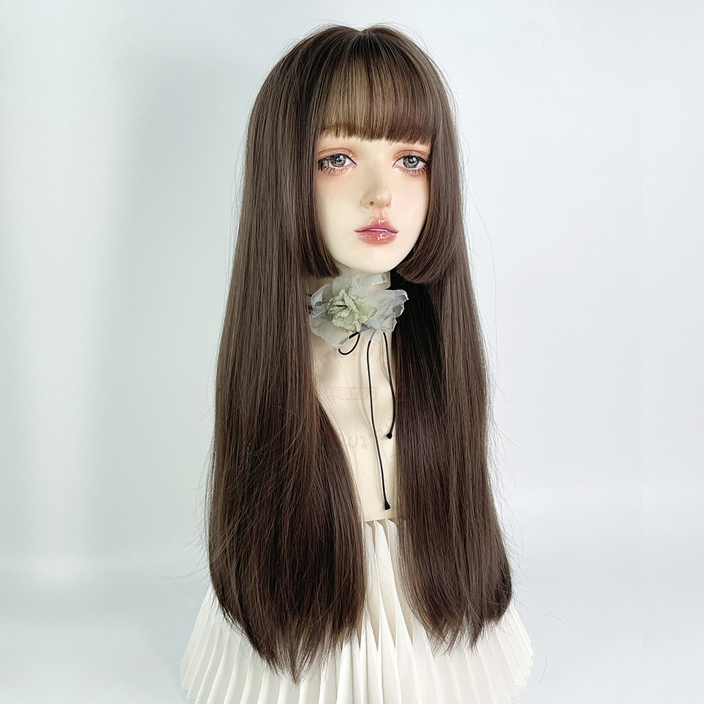 📚 公主切假发全头套女长直发水母头日系lolita软妹日常齐刘海姬发式