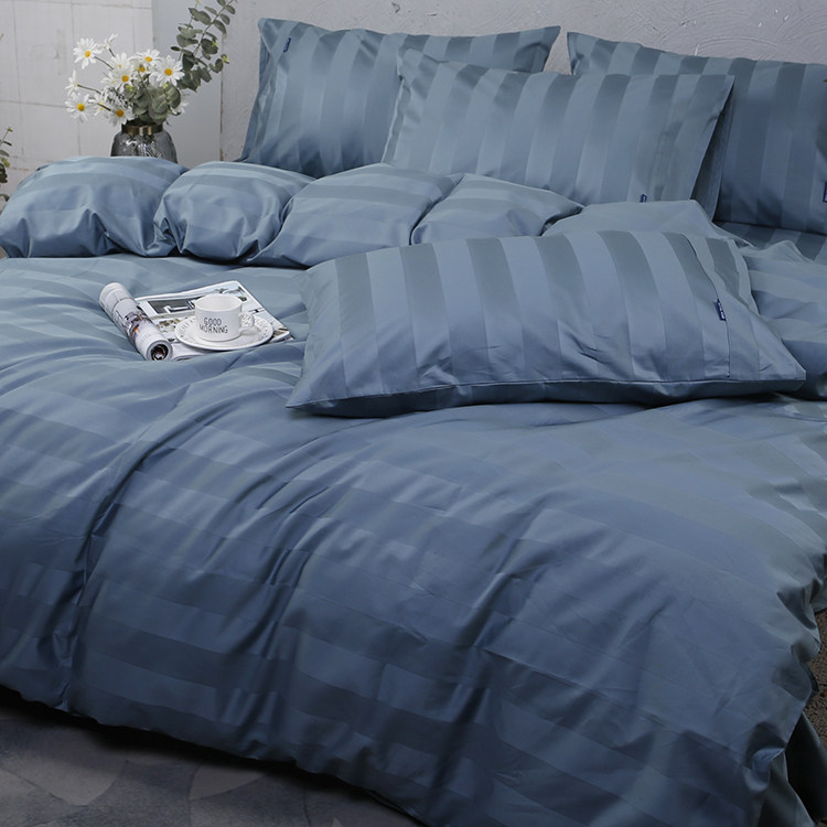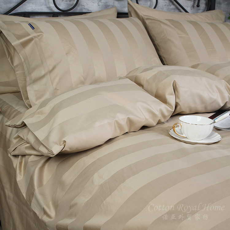 📚 外贸牛货1400根加厚纯棉贡缎被套埃及棉高支纯色缎条双人床单套件