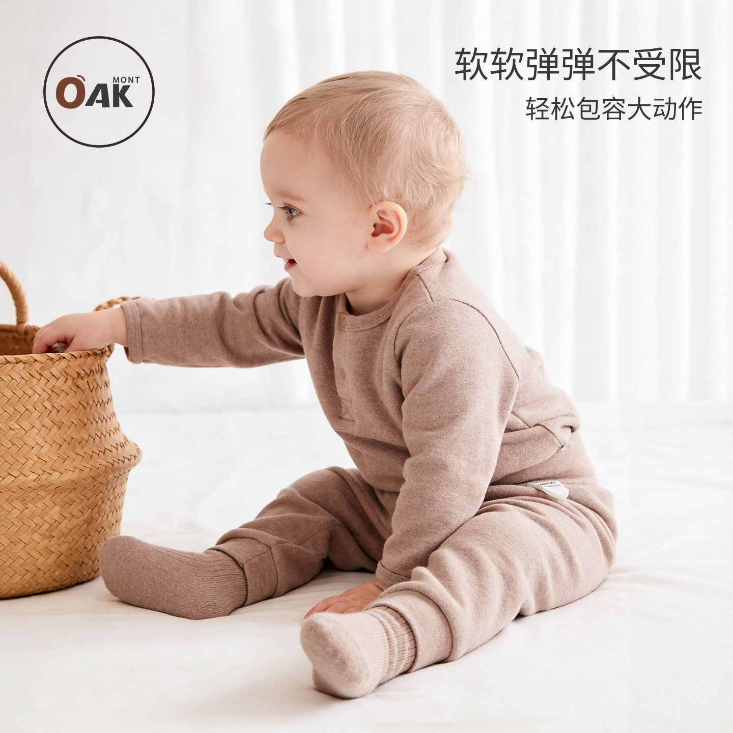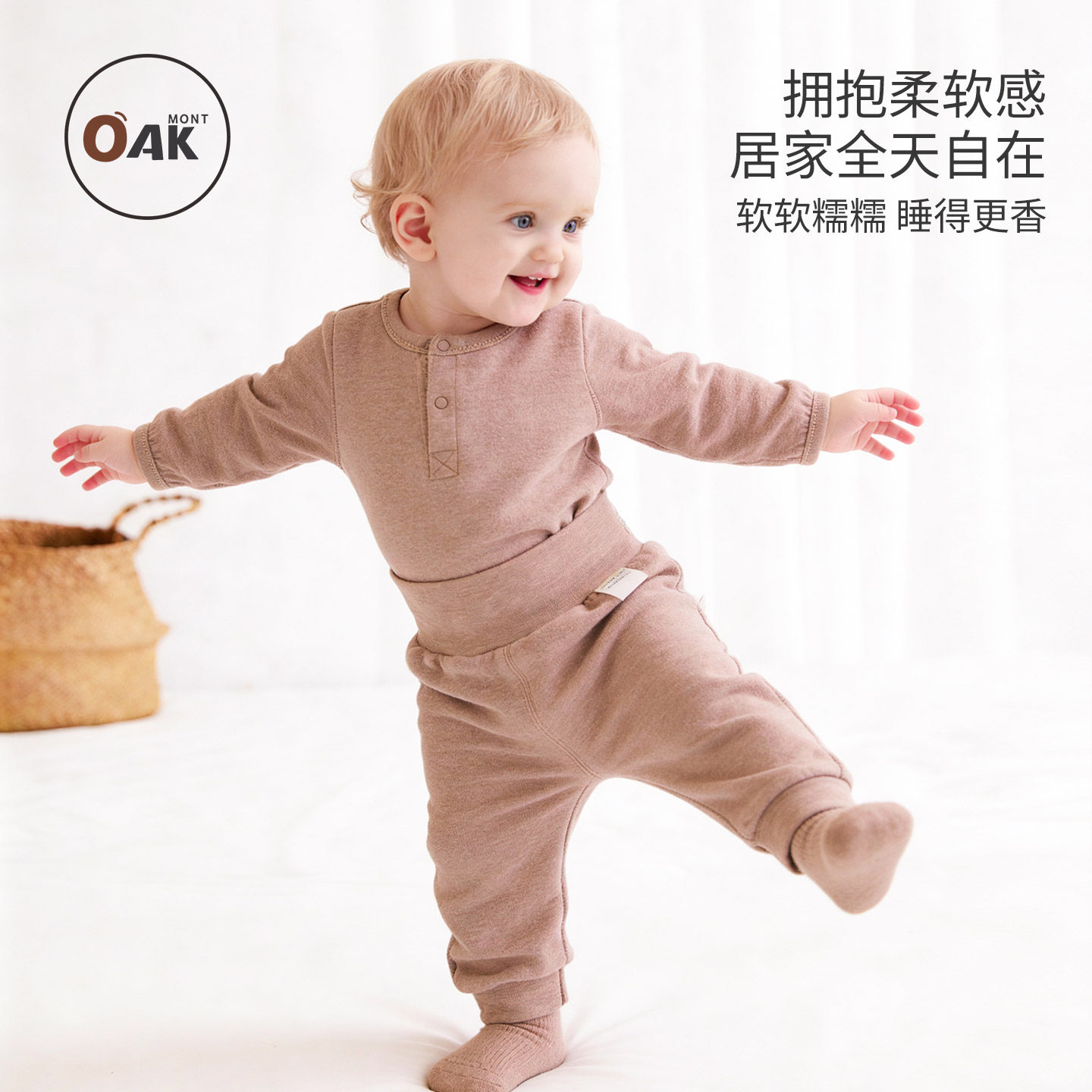 📚 Oak mont春秋宝宝衣服婴儿睡衣磨毛保暖分体套装打底秋衣裤两件套