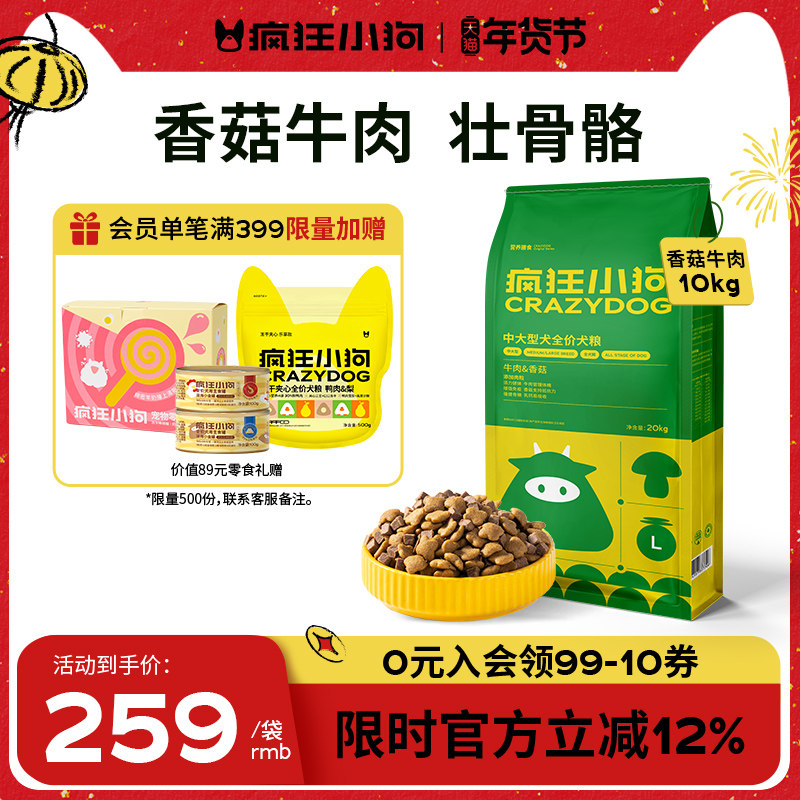 📚 疯狂小狗牛肉香菇肉粒双拼狗粮40斤装金毛拉布拉多边牧大型犬成犬