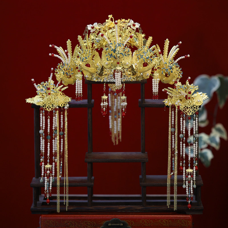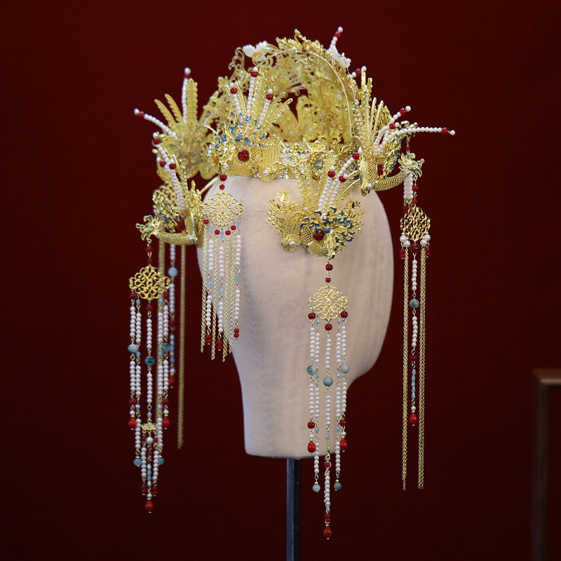 📚 凤冠明制头饰新娘汉服婚嫁发冠新款中式婚礼皇后大婚秀禾发饰奢华
