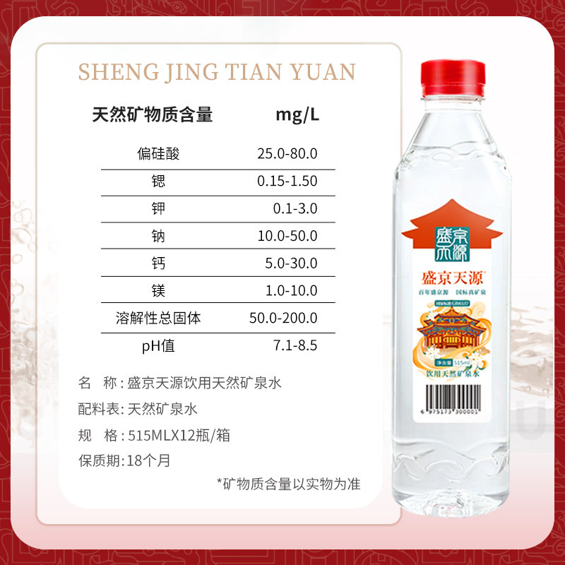 📚 升级纸箱|盛京天源偏硅酸天然矿泉水饮用水弱碱性高端515ml*12瓶