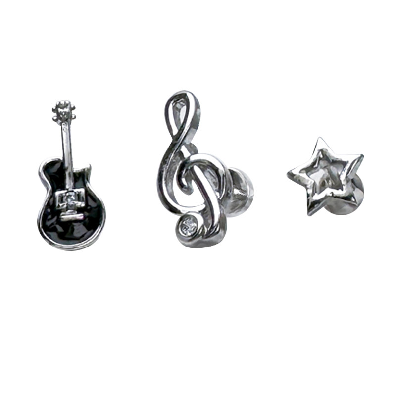 📚 二十二丁目 吉他音符耳钉不对称小众复古钛钢闪钻耳圈星星耳骨钉