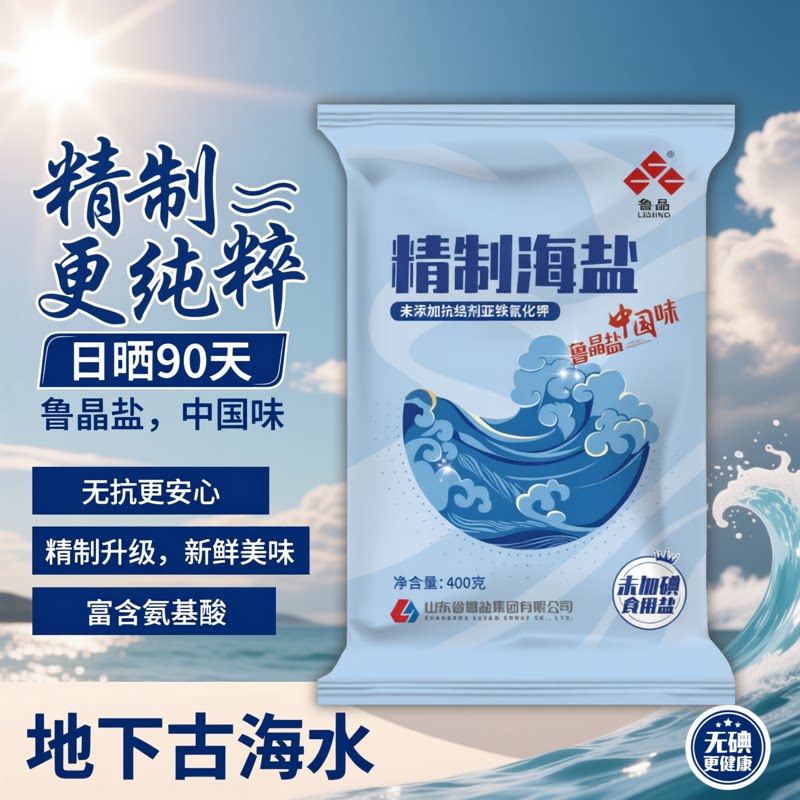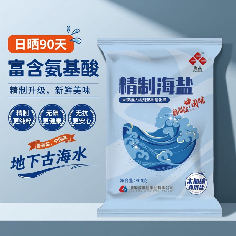 📚 【天天特价】鲁晶海盐食用盐精制海盐食盐细盐家用无抗结剂400g