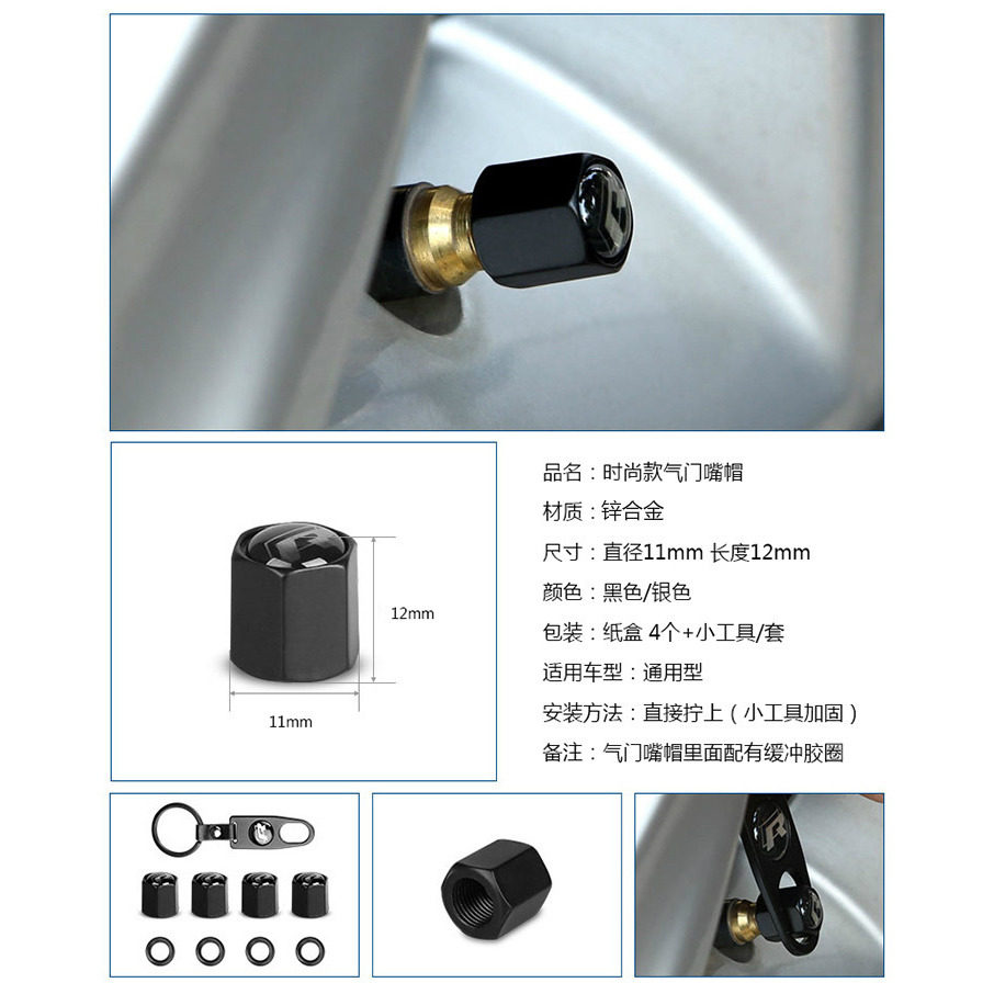 📚 合金气门嘴帽个性改装汽车防盗轮胎帽皮扣气门芯帽质感美观钥匙扣