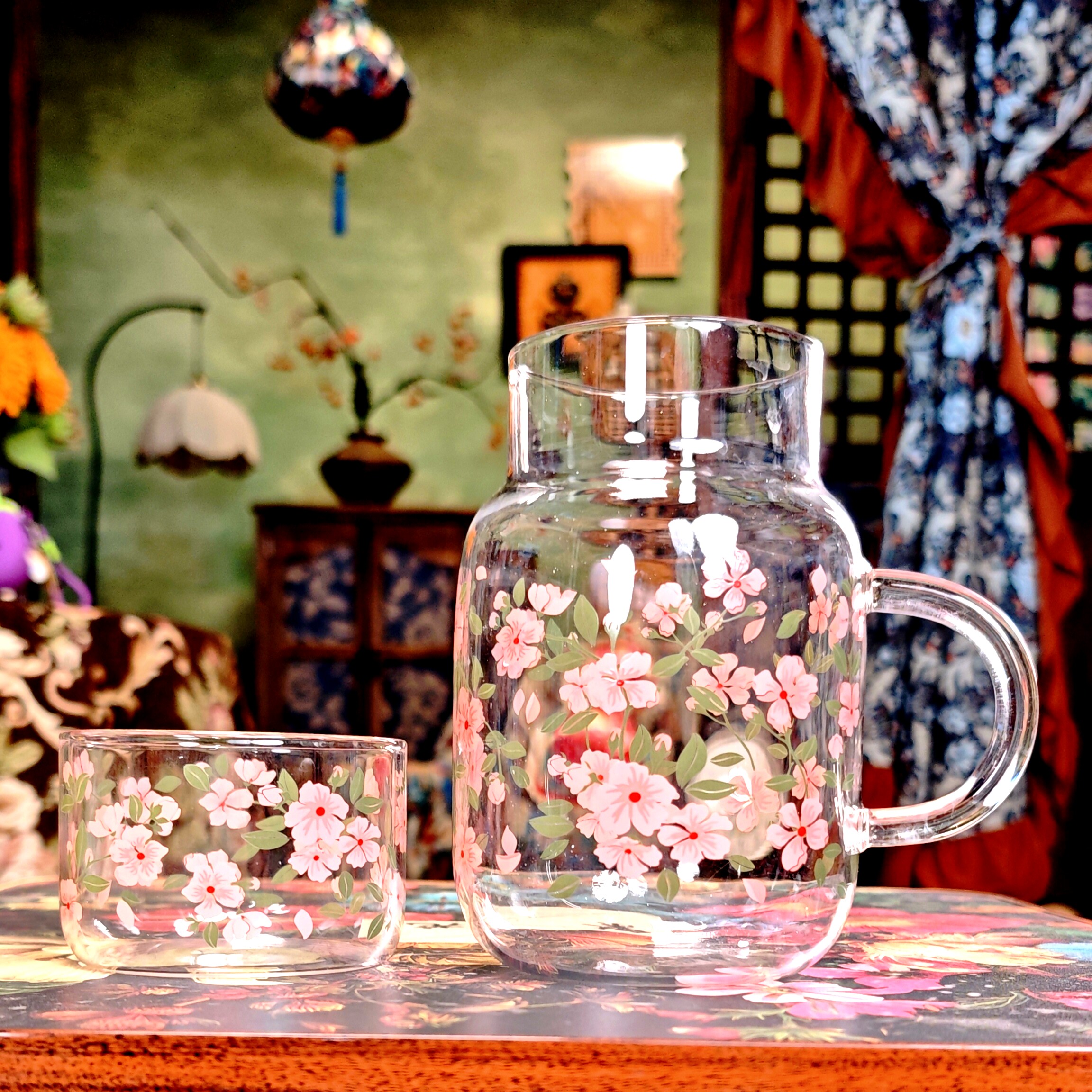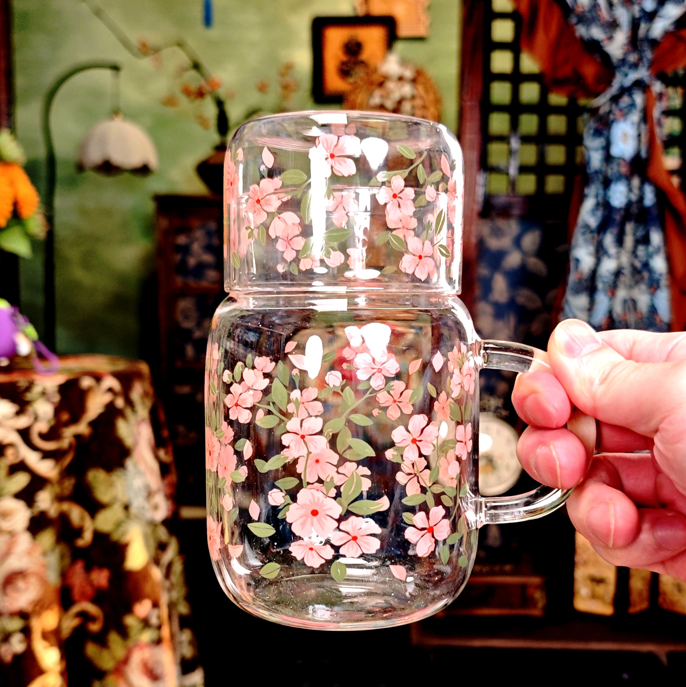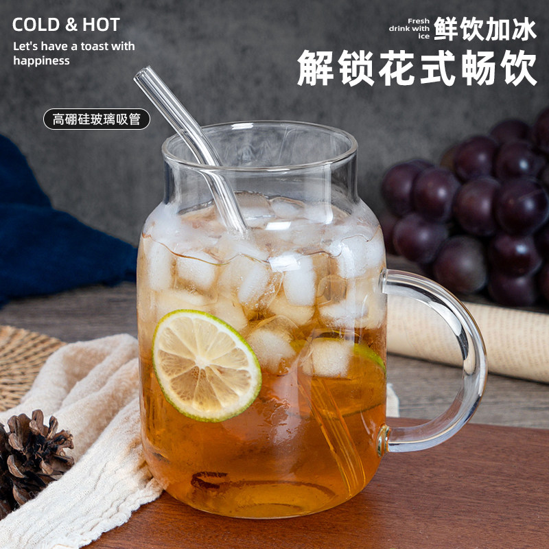 📚 玻璃杯大容量耐高温喝水杯子高颜值宿舍用家用带手柄800ml饮水壶