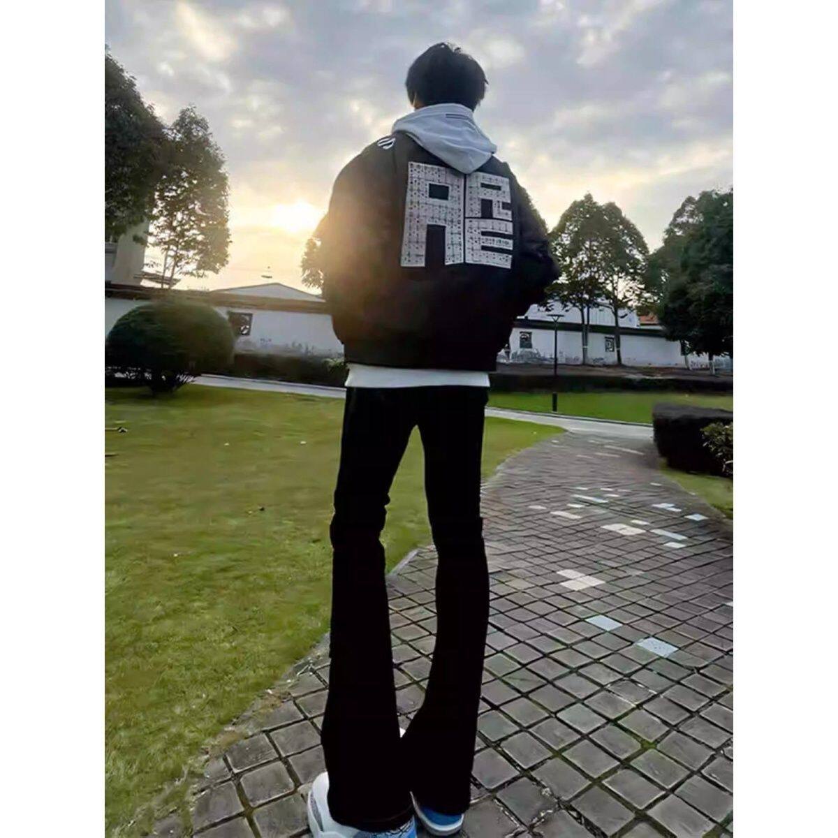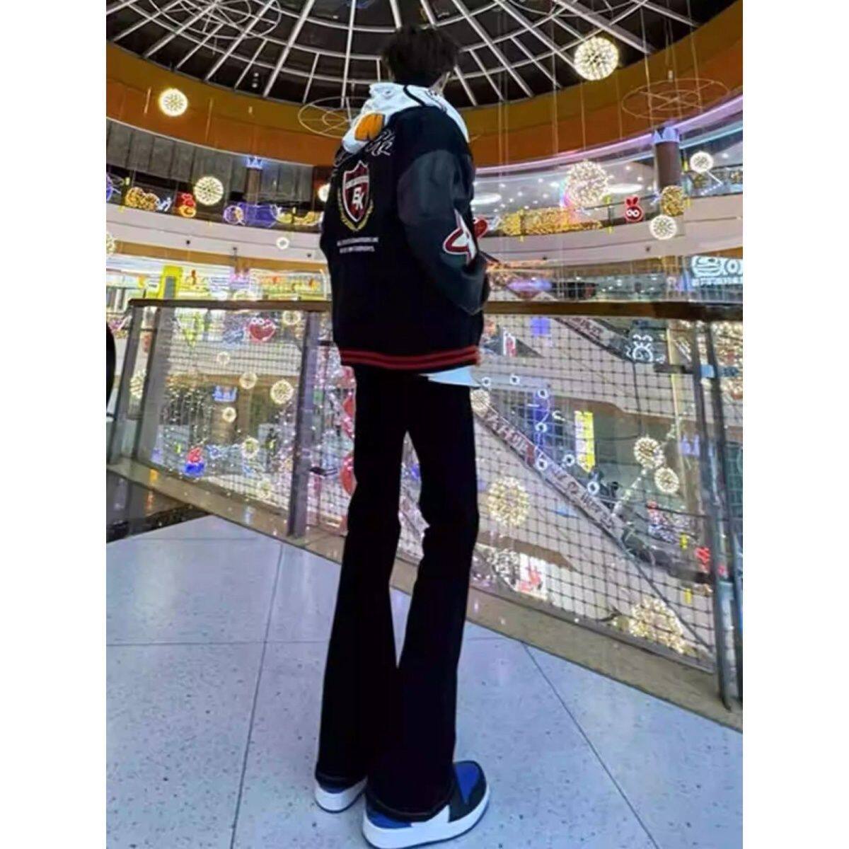 📚 美式vibe裤子男款秋冬高街黑色直筒牛仔裤加绒高腰显瘦弯刀微喇裤