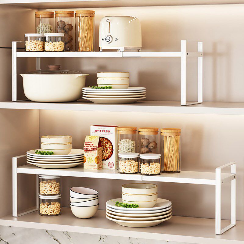 📚 厨房可伸缩置物架柜子分层收纳架橱柜内台面多层双层隔板小型架子