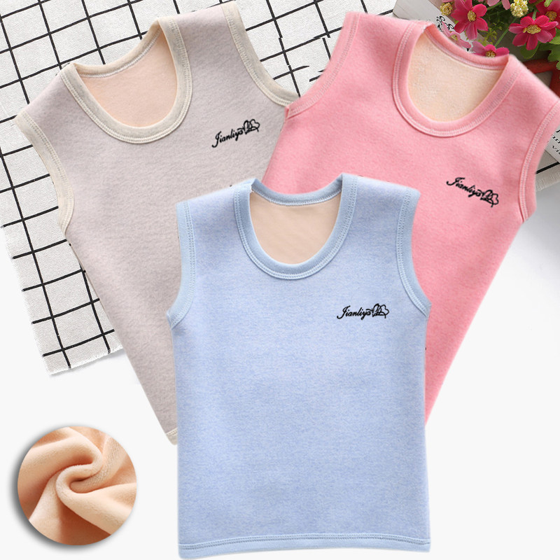 📚 儿童加绒保暖背心男童女童拉绒加厚坎肩小中大童黄色绒马甲宝宝