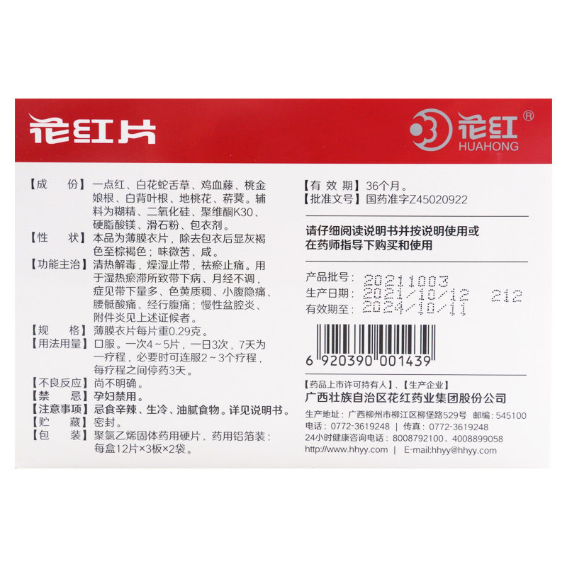 📚 花红 花红片72片/盒清热解毒带下量多腹痛月经不调盆腔炎附件炎