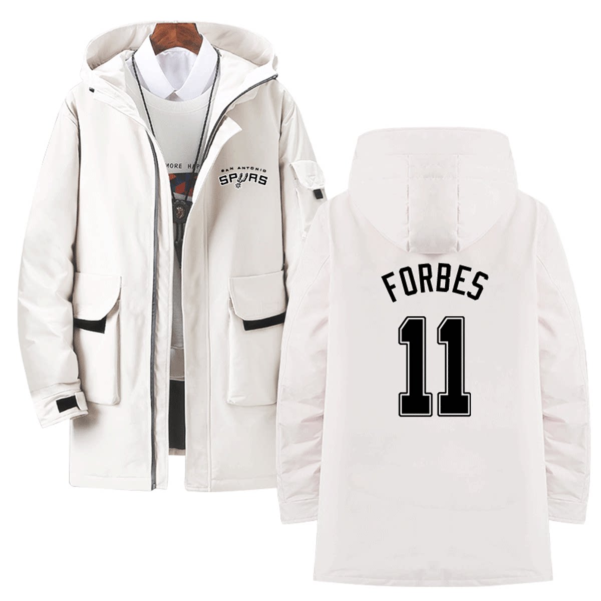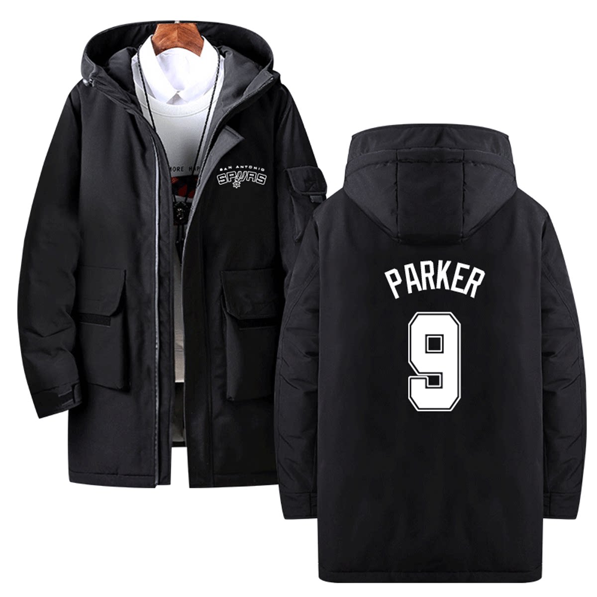 📚 马刺队男女邓肯德罗赞帕克篮球运动连帽外套可定制中长款冬羽绒服