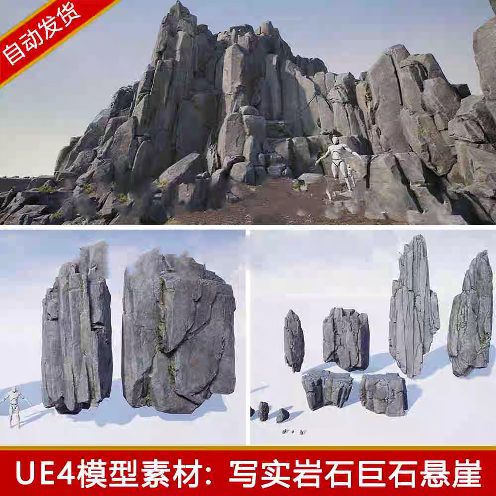 📚 ue4写实石头模型低模山石岩石巨石悬崖山体石块苔藓雪石虚幻4素材
