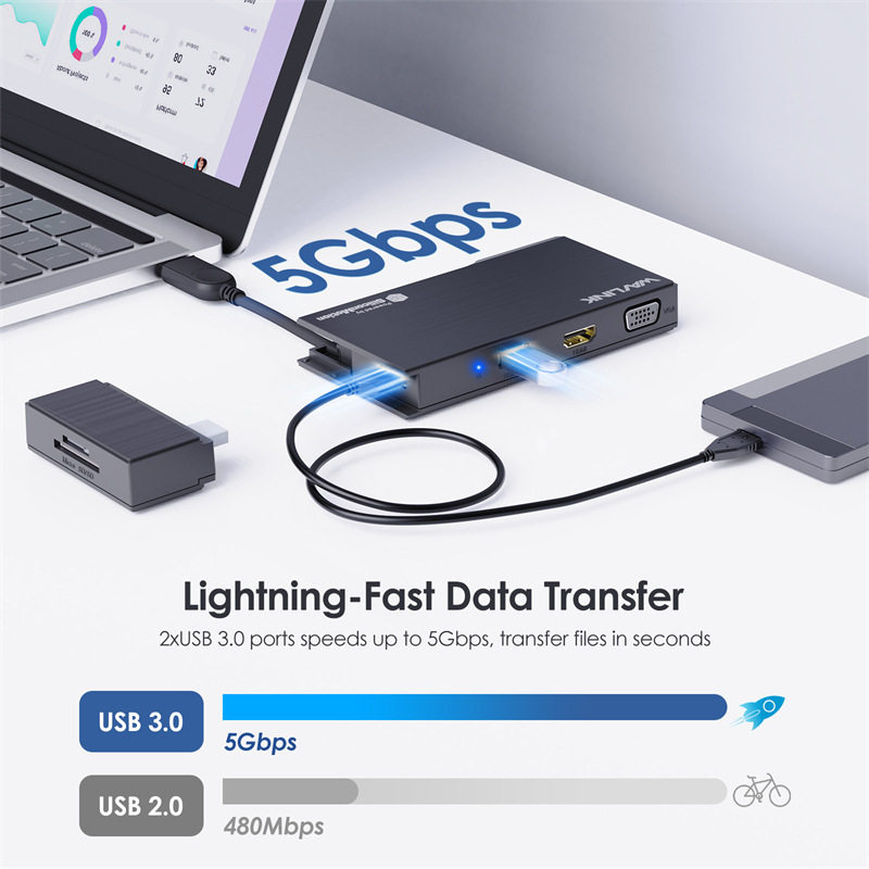 📚 Wavlink高清迷你扩展坞USB3.0转4KHDMI/1080P VGA/千兆网口分线器