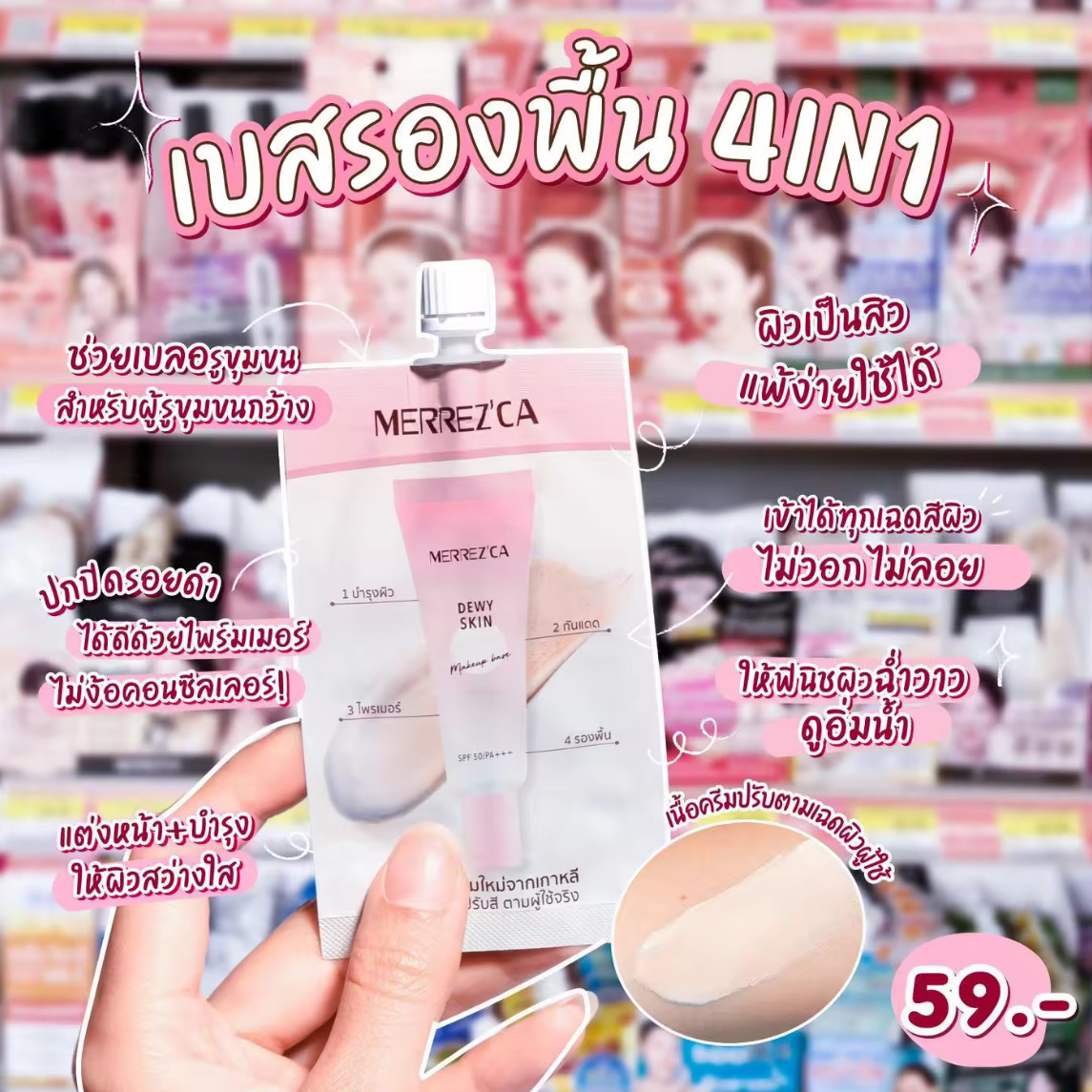 📚 泰国MERREZ'CA 妆前乳隔离防晒粉底液4合1遮瑕控油 油皮打底亮肤
