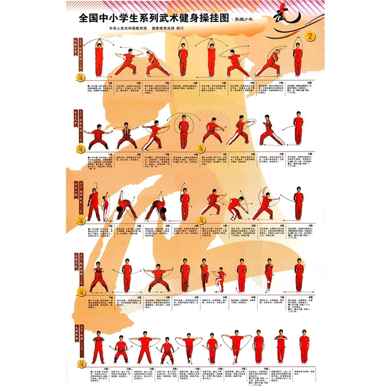 📚 中小学生武术健身操挂图宣传画英雄少年广播体操墙贴纸画图
