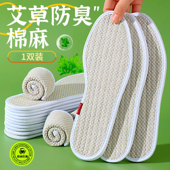📚 艾草防臭亚麻鞋垫男女吸汗透气除臭留香皮鞋汗脚专用软底舒适夏季