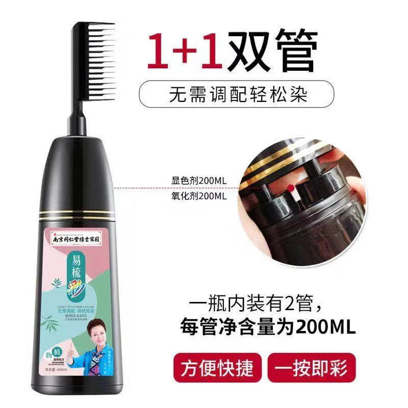 📚 南京同仁堂 一洗黑洗发水染发剂染发膏植物一梳黑自然黑色男女白